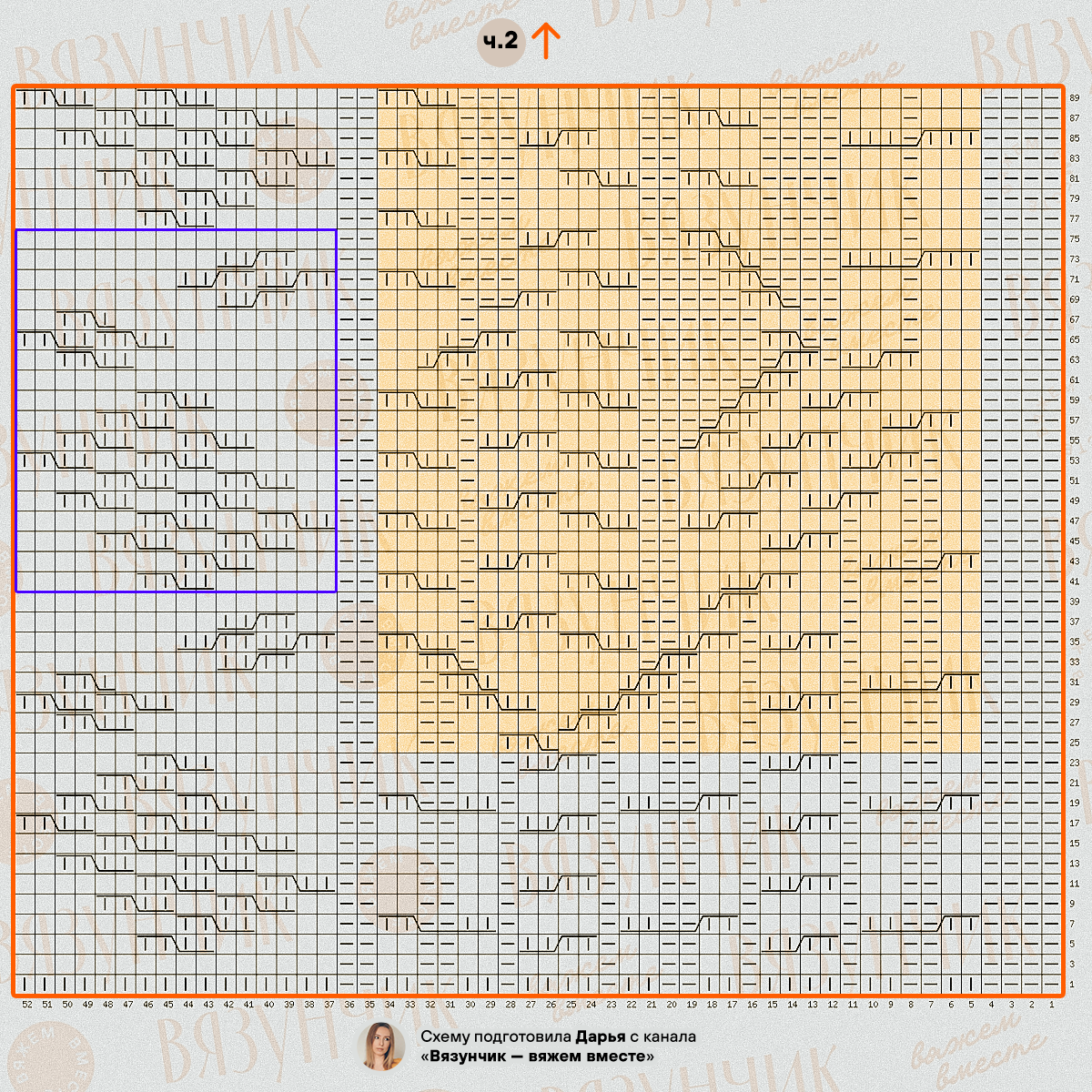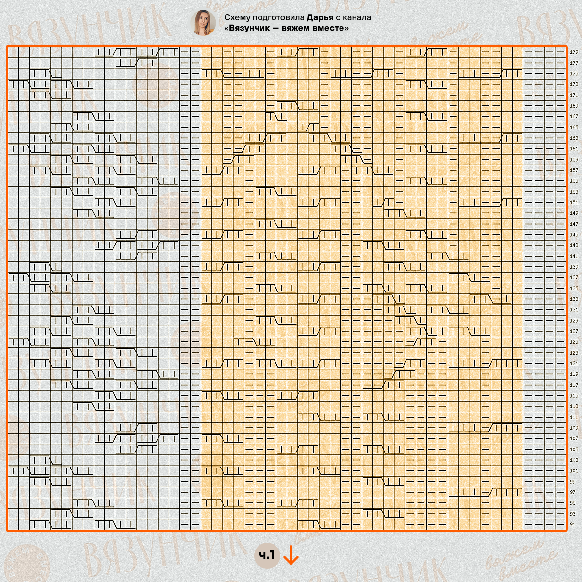 Цветом я отметила раппорты узоров, будьте внимательны при вязании!