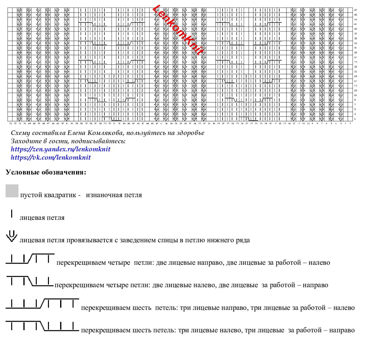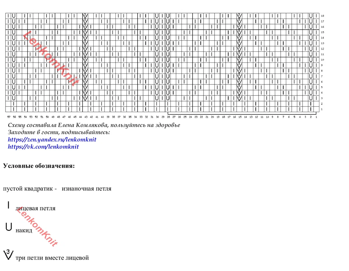 Вот схема узора для воротника, раппорт по ширине отмечен внизу (28 петель), а в высоту он вяжется на нужную длину.