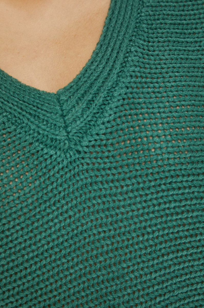 Ворот свитера оформлен резинкой 1х1, для хорошей посадки сделаны швы. Чтобы не сшивать в этом месте, можно просто сделать укороченные ряды для формирования выреза в виде V.