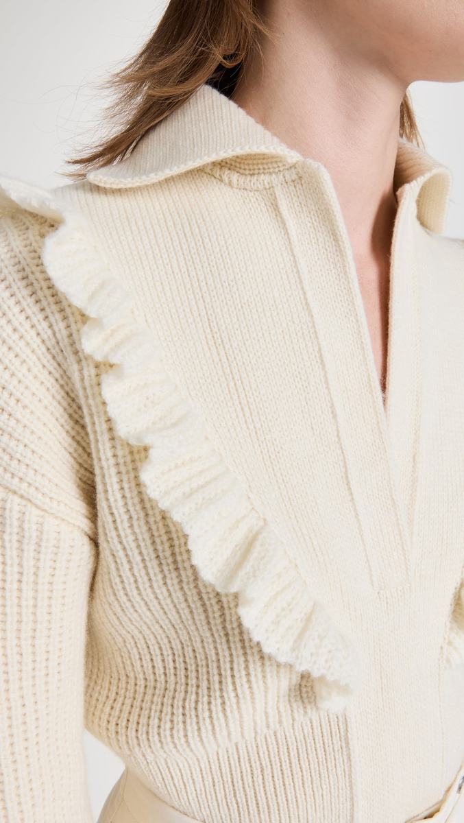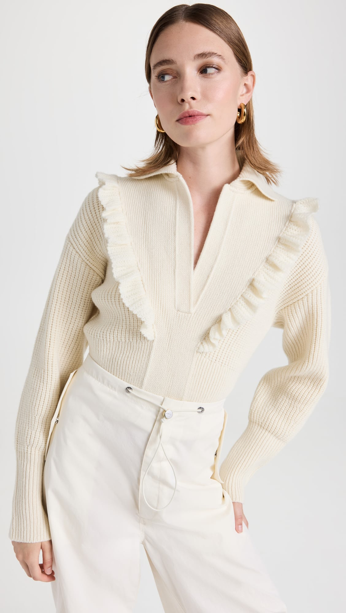 Первый свитер - бренд Philosophy di Lorenzo Serafini. Модель называется Jonny Collar Ruffle Sweater, цена - 725,00 $.