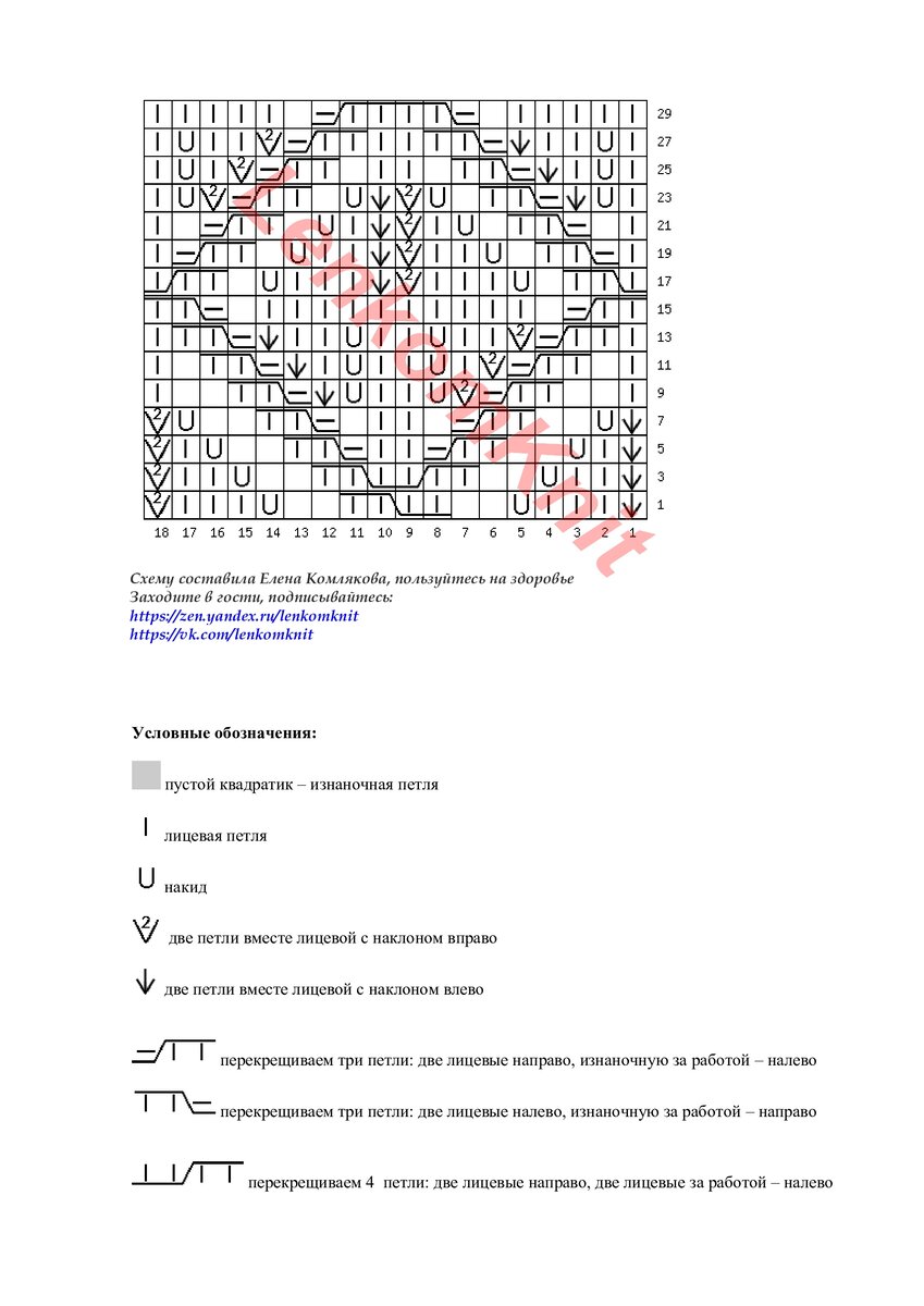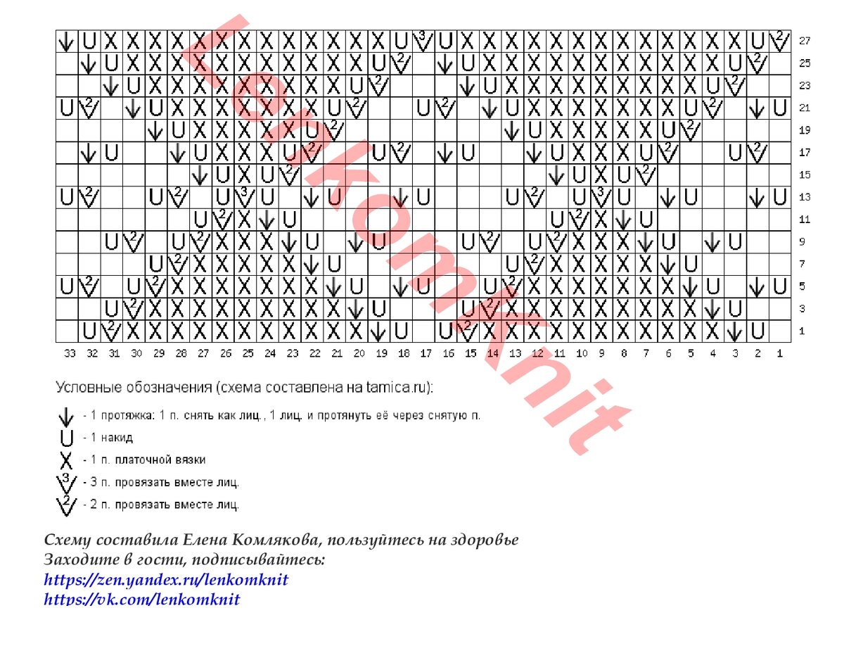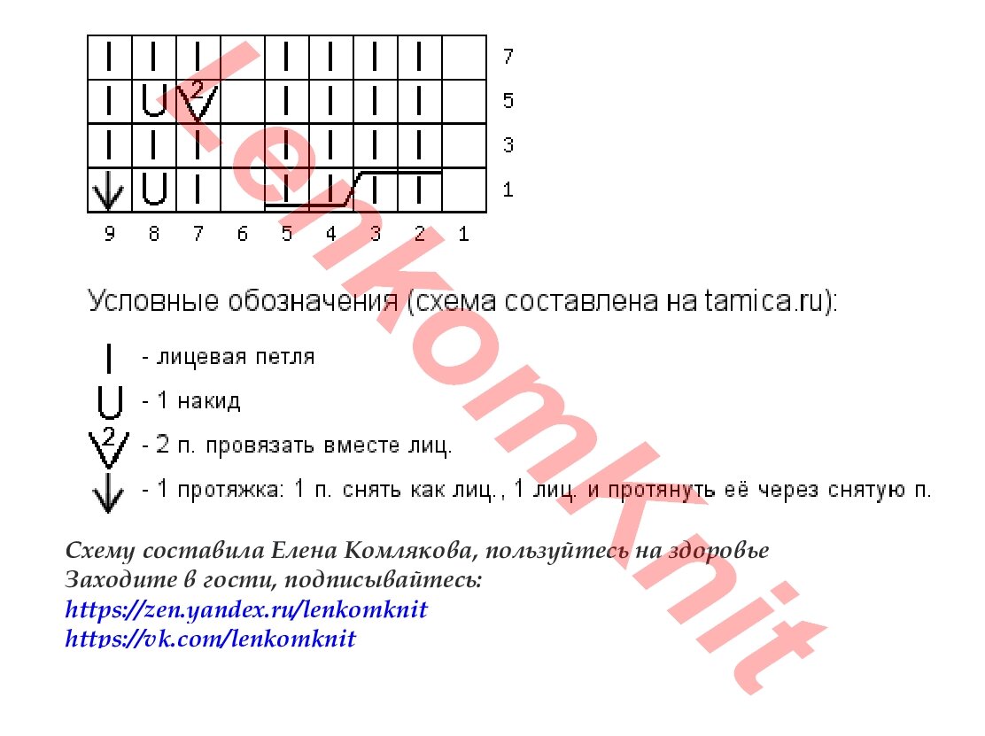 На рисунке - один раппорт узора и условные обозначения к схеме (она составлена для лицевых рядов).