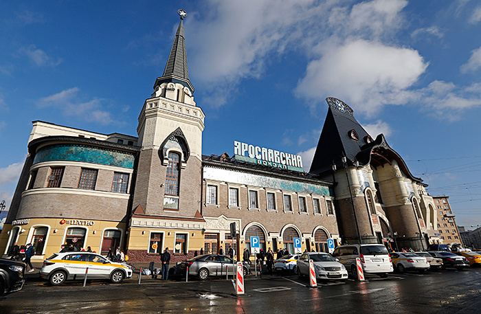 Ярославский вокзал, Москва Здесь начинается Транссибирская магистраль — самая длинная железная дорога в мире протяженностью 9288 километров. Здание, напоминающее терем с темными башнями и орнаментами, построили в 1902-1904 годах по проекту Федора Шехтеля. В нем удалось совместить элементы древнерусского зодчества с декором в стиле модерн. В интерьере вокзала можно увидеть колоннаду Льва Кекушева, рельефы о Русском Севере, а два года назад в одном из залов появился масштабный триптих молодого художника Дмитрия Аске.