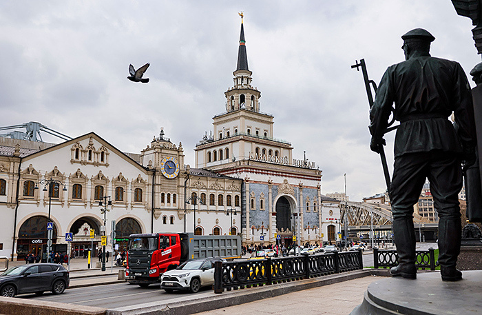 Казанский вокзал, Москва Здание строили с 1913 по 1940 год по проекту архитектора Алексея Щусева. В архитектуре сочетаются элементы русского и восточного зодчества, московского барокко XVII века, нижегородского и рязанского стилей. Главный элемент — многоярусная башня высотой 87 метров, стилизованная под башню Сююмбике Казанского кремля. Венчает ее шпиль с драконом Зилантом — символом Казани. Роскошный интерьер в стиле московского барокко можно увидеть в зале ресторана (сейчас это зал повышенной комфортности): белоснежные с позолотой детали, лепнина, встроенные зеркала, живопись Евгения Лансере. А в 1997 году по чертежам Щусева построили еще и Царскую башню, где находится выставочное пространство.