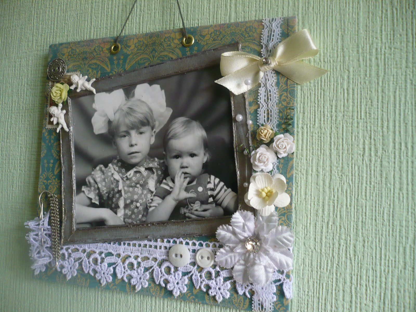 Смастерила рамочку для фотографии, где я и моя младшая сестренка (96 год), а подарю я ее нашей любимой мамочке...