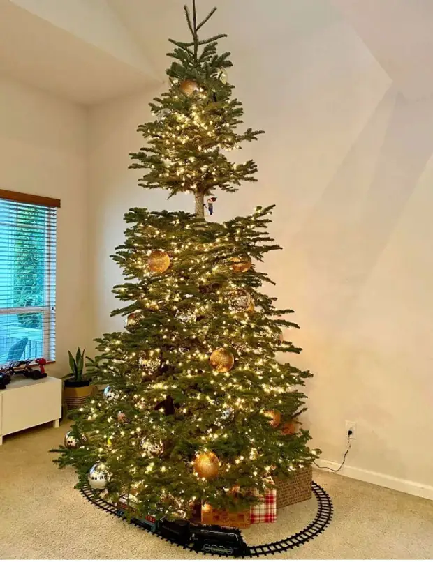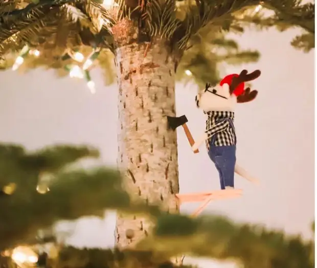 В этом году мы купили ель, у которой в верхней части нет веток и иголок. Вот как можно обыграть этот недостаток.