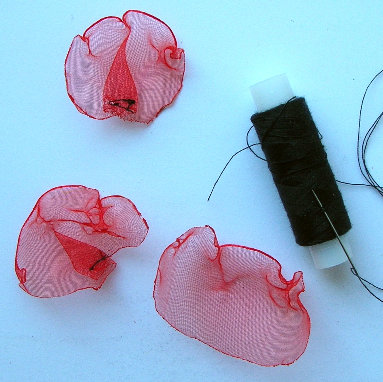 края заготовочек плавим над свечкой ( я делаю это просто зажигалкой) Не увлекайтесь-органза плавится очень быстро-за доли секунды-от заготовок могут остаться одни дырки!!!