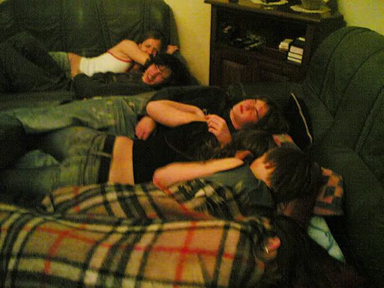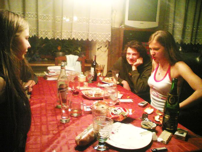 [показать] [показать] [показать] [показать] [показать] [показать] [показать] [показать] | С утра мы с Дашуней встретились у метро Цветной Бульвар и отправились к небезызвестному Сане Володину на элитную тусовку распиздяев, выпить немного и пойти на расколбас. Пришли. Джинтоник-шампанское-вино-пиво. Поиграли на гитаре, поплевали с балкона, повалялись на диване, опустошили Санины запасы продовольствия. Дождавшись Рузая с Миладзе, мы Филя, Рус, Саня Володин, Ларин, Даха, я отправились на дискотеку. На самом деле дискотека была говеной. Народу мало, музыка не очень, светло. Но приняв настойку Евиного дедушки,которая позитивно налегла на все выпитое прежде, я, перестав различать цвета, пошла в разнос. Прыгая по залу с Ваней под Нирвану, обнимаясь с Эдвином и отжигая на сцене с парнями из 11, я ощутила все прелести дневной дискотеки в общеобразовательной школе. Потом вдруг меня потянуло на лирику и я, как истинное эмо-хуэмо, рыдала на плече у очередного володина-гедоса-ларина, танцуя медляк, и сидела, уткнувшись в одну точку. Пятичасовая дискотека удивительно быстро завершилась массовым походом на бульвар, где я насладилась воистину весенней картиной: стадо полупьяных отпрысков пошло на водопой в фонтан. Кто-то обливался шампанским, кто-товсе еще дрыгался под вообразаемую музыку, а Наська Хижняк напялила себе на голову крышку от взбитых сливок и провозгласила себя Королевой Сливок. На Дашкино замечание, что если она и королева, то только ггггавна, Настень миролюбиво покосился на Гавнидзушку. И тут раздался звонок. Кудрявый? Что-то странное. Ах, падла, прознал, что мои родители этой ночью на даче. Леееночка, ты где? Мы с Димой уже полчаса у тебя в подъезде кукуем. Сейчас пойдем втыкать на качельки. Вот те на. приехали. Вообще теоретически предполагалось, что эту ночь я проведу в компании Гавнидзушки, Дашки и Миладзе у меня на кухне, попивая бережно оставленное мне мамой красненькое, вовремя лягу спать, а на утро, цивильно позавтракав и повторив конспекты, отправлюсь в универ на семинар и 4 пары. Но это теория. Что же произошло на практике... Я, еще до конца не прийдя в себя, решила, что парой человек больше, парой меньше - не существенно. Предложила Гучче приехать на красненькое. Да тут еще и Володин рядом... и Ларин... И Рус... Поехали мы вчетвером ко мне. Ларин-Гучча-Рус-я. Приехав на Таганку, разделились: Рус с Ленкой пошли в магазин, чтобы купить что-нибудь на стол, а мы с Лариным - ко мне, встречать окоченевших Кудрявого с Шевчиком. Холодильник у меня пустой, но я судорожно начала килограммами нарезать сыр с колбасой, греть какое-то сомнительное мясо и расставлять стаканы. Тут подоспели Рус с Гуччей и звенящими пакетами, а за ними... Володин, Даха, Юлька, Наська-королева-сливок и Миладзе с хавчиком и бухлом. Уселись за стол, начали разливать. Выяснилось, что всех, кроме Шевы, отпустили на ночь. И тут началось. Музыка на полную громкость, полные стаканы, улыбки на лицах... Полетел первый стакан. Виноватая рожа Кудрявого. И тут... Фейерверк чувств. я видела Настины глаза. в них загорелся огонь. Между ними пробежала искра... НЕТ!!! это был файербол!! - Ты не поверишь, но это я все всегда бью... - Ты? Я тоже! Они долго смотрели друг на друга... Бугага, а что дальше было - нискажу. Парни играли в бильярд, девушки терли обо всем на свете. Бокалы звенели, микроволновка, только и подававшая им