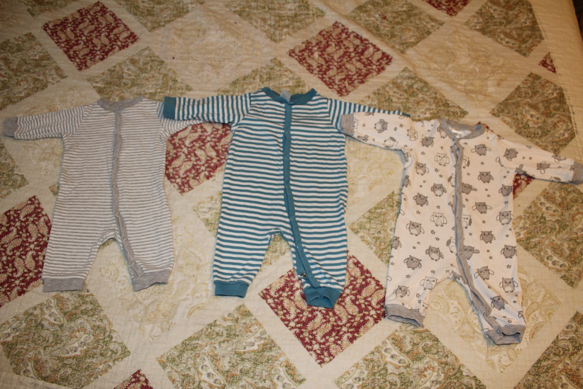 1. Слипы на кнопках H&M. С открытыми ножками. Размер 56 (1-2 мес). 3 шт. Серый полосатый, голубой полосатый, с совами. Ношены по паре раз. 100% хлопок.