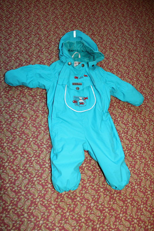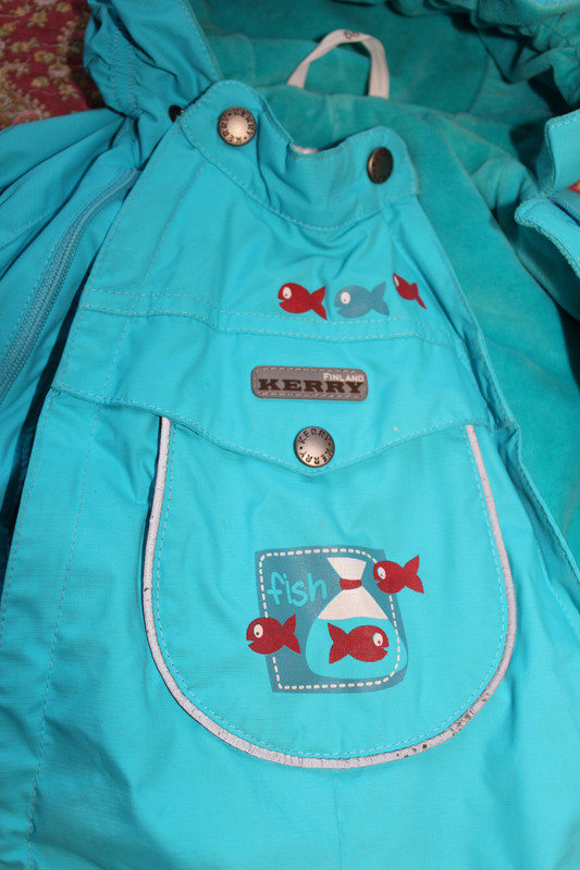 41. Точно такой же, как предыдущий, но на размер больше, демисезонный комбинезон Керри, размер 68. Утеплитель 80, это, примерно, до 0 градусов. Удобный, с отворотами на ножках и ручках, на двух молниях - удобно надевать. Расцветка подходит и для мальчика, и для девочки. На груди кармашек для соски и принт с рыбками. Б/у, в отличном состоянии. 1000р.