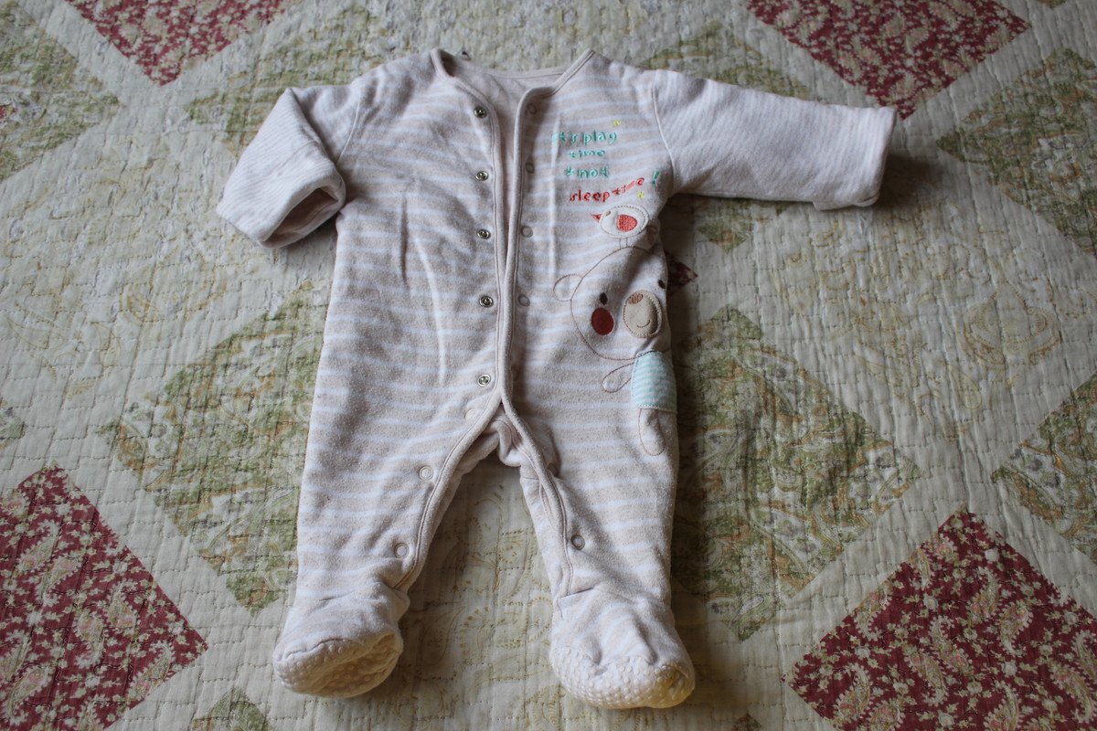 5. Комбинезон для сна, утепленный Mothercare. Размер 0-3 мес. Ножки закрыты, на ручках есть отвороты.