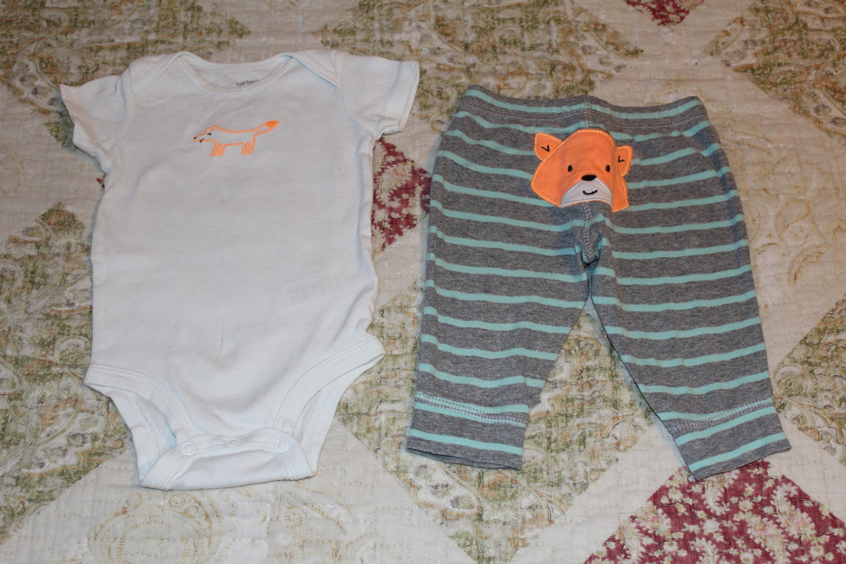 6. Комплект Carters, 0-3 мес. 100% хлопок. Боди и штанишки с открытыми ножками. С лисами.