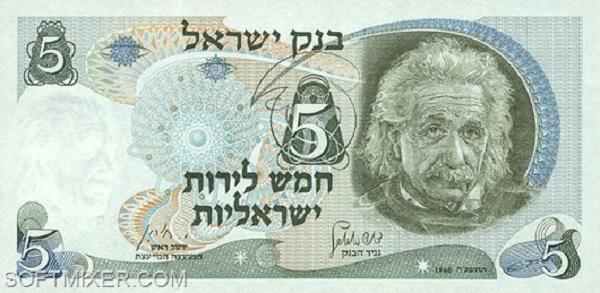 Израильская банкнота (5 лир, 1968) с портретом Эйнштейна