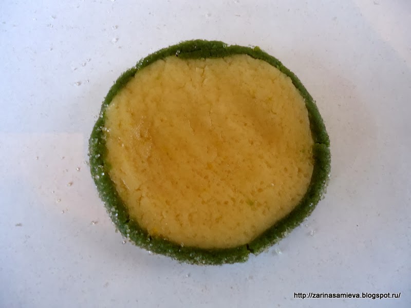 Обернуть светлое тесто зеленым.