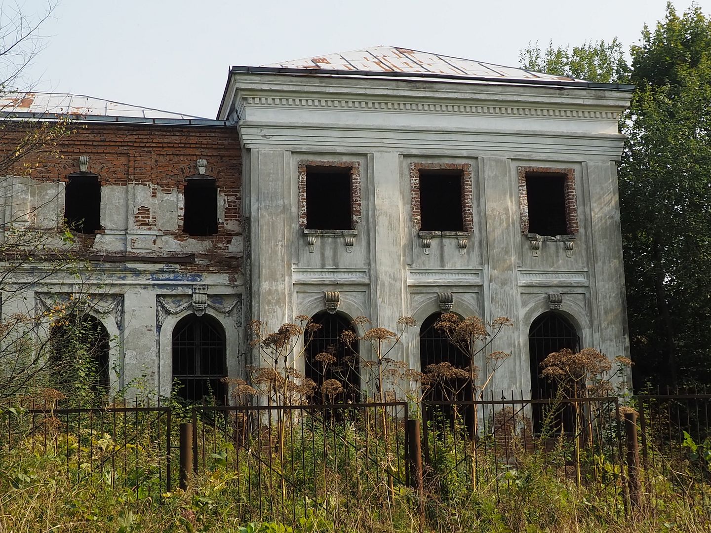 А оттуда мы поехали смотреть заброшенную усадьбу Осташёво, где есть руины перестроенного в советское время бывшего господского дома.