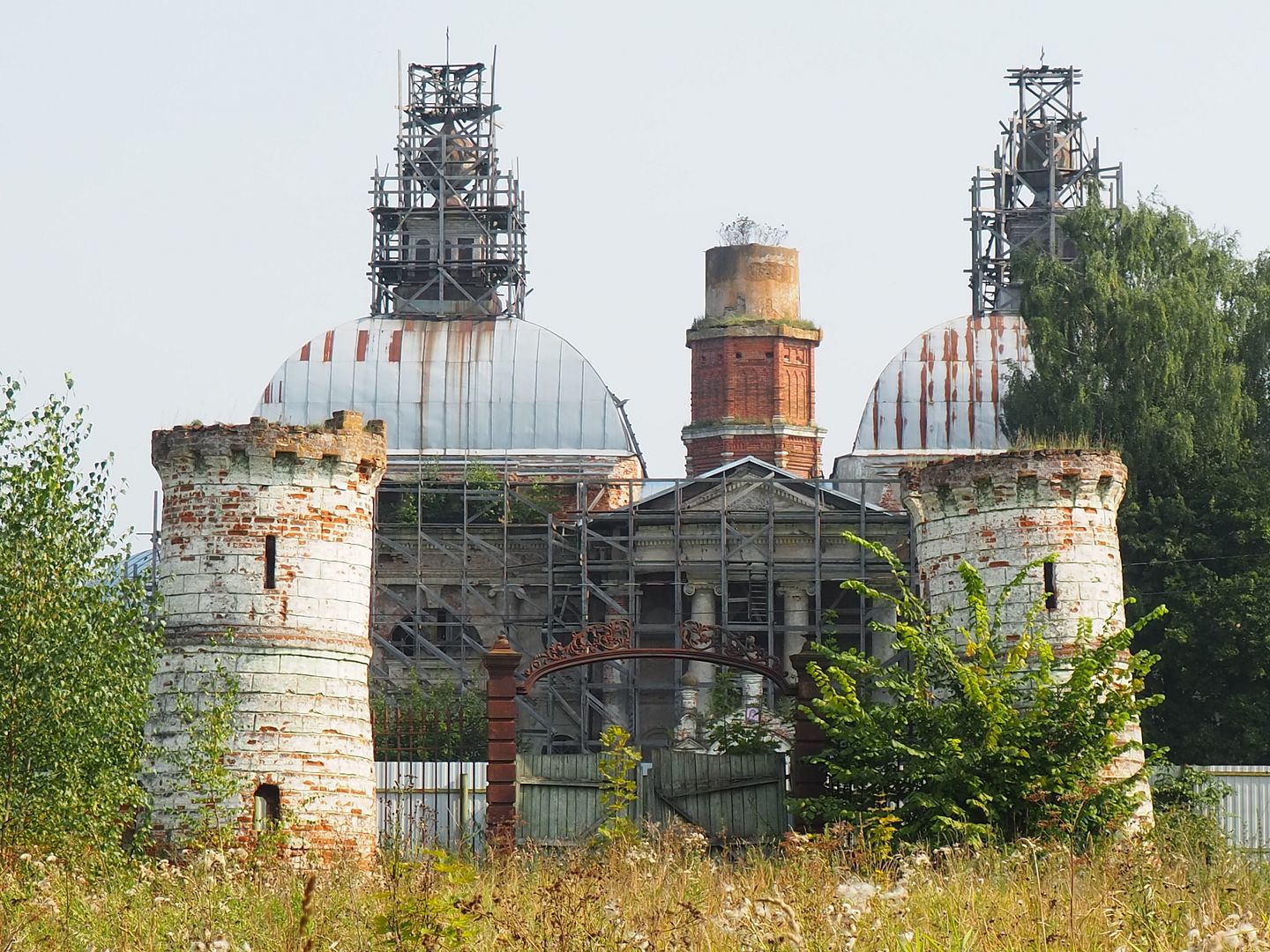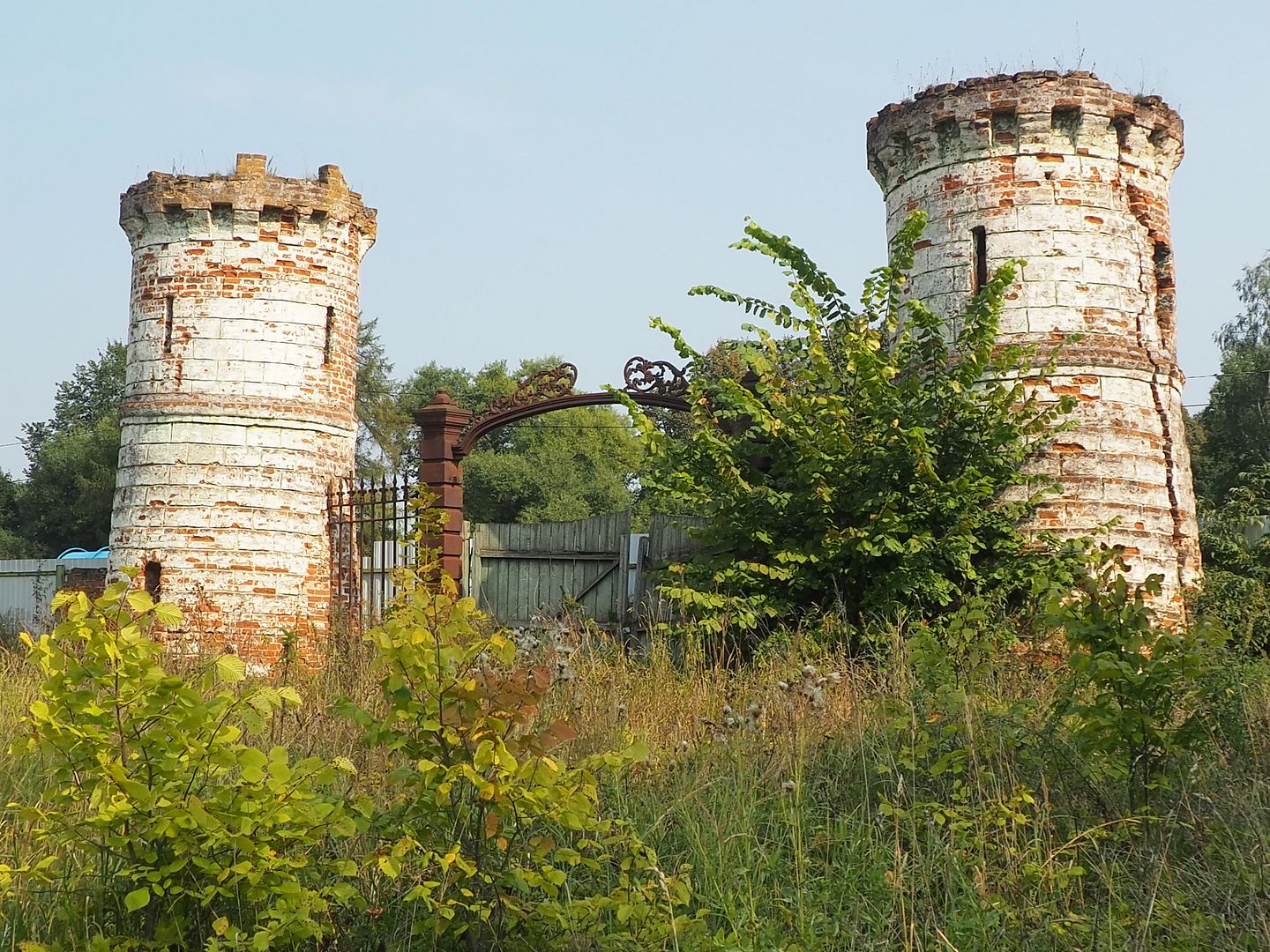 Въездные ворота в бурьяне.