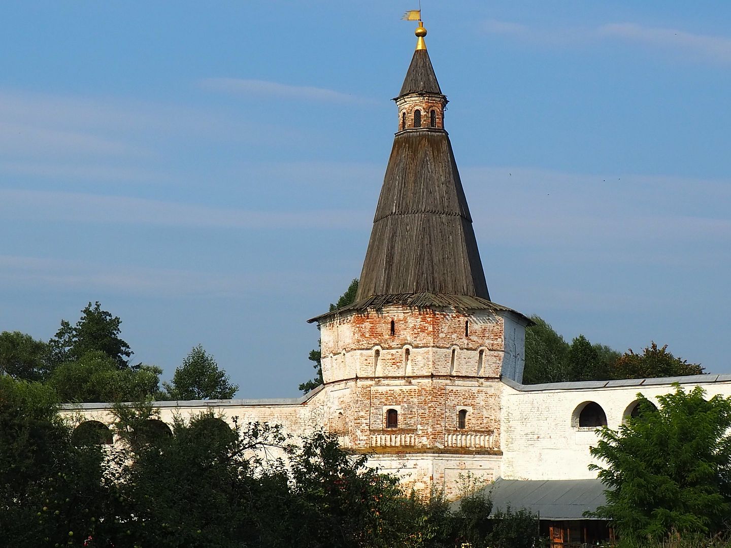 Первым пунктом на нашем пути стал Новый Иерусалим. Я была в нём много раз в разные периоды его истории, но сейчас он очень хорошо выглядит. Мы зашли в собор, погуляли по территории и, конечно же, залезли на стену и прошли по пряслам везде, куда можно пройти.