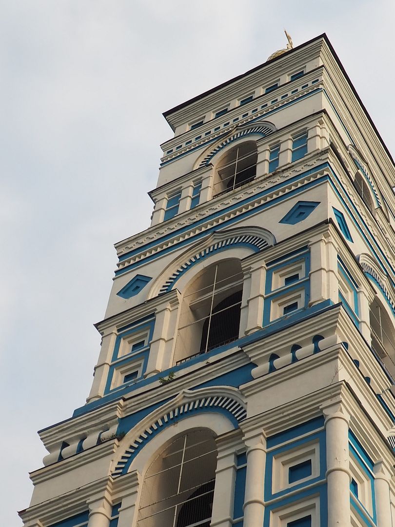 А второй раз остановились совершенно удивительным образом в селе Пушкино посмотреть очень неожиданную Успенскую церковь, обошли вокруг неё, поздоровались с дяденьками, которые там что-то делали, а они вдруг предложили подняться на совершенно потрясающую пятиярусную колокольню. Что мы и проделали с большим любопытством и огромной благодарностью.