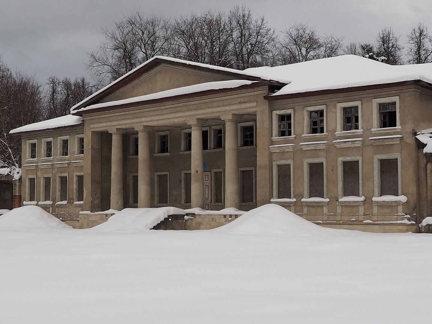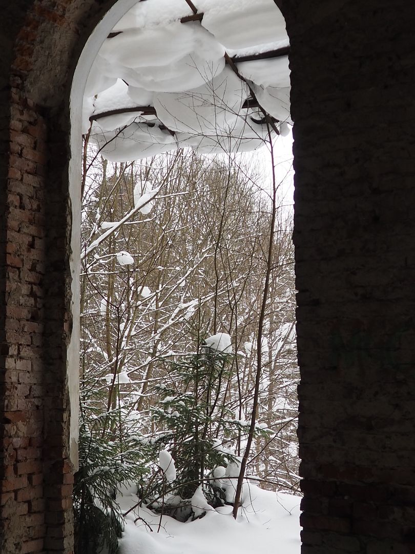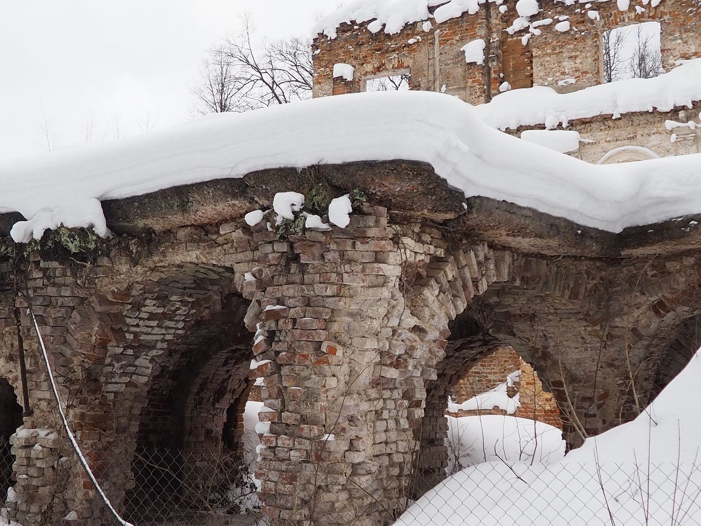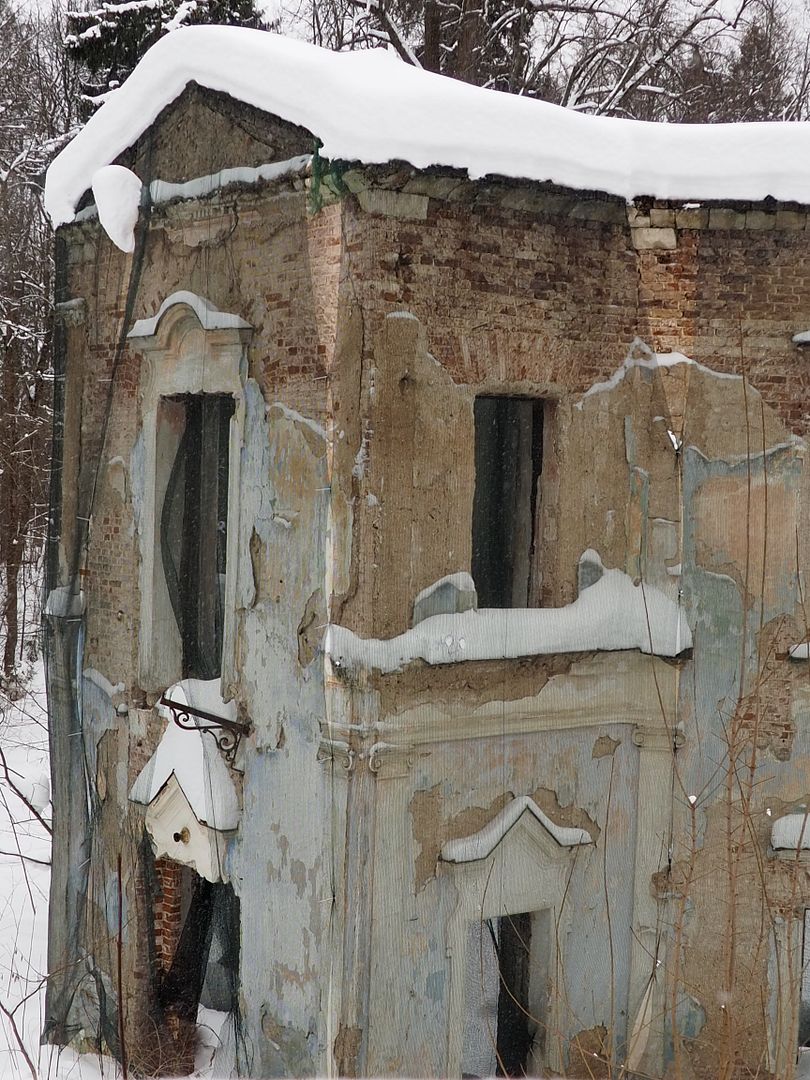 Совсем недалеко от Марфино находятся руины гораздо менее известной, но не менее яркой подмосковной усадьбы - Никольское-Прозоровское. Она стала самым ярким впечатлением нашего дня. Усадебный дом стоит в лесу, через нынешние сугробы к нему таки протоптана тропа (но, сойдя с тропы, ты реально проваливаешься в снег как минмум по колено). Внутрь дома можно попасть, забора нет. Мы очень любим лазить по руинам и заброшкам, поэтому там мы, конечно, насладились сполна.