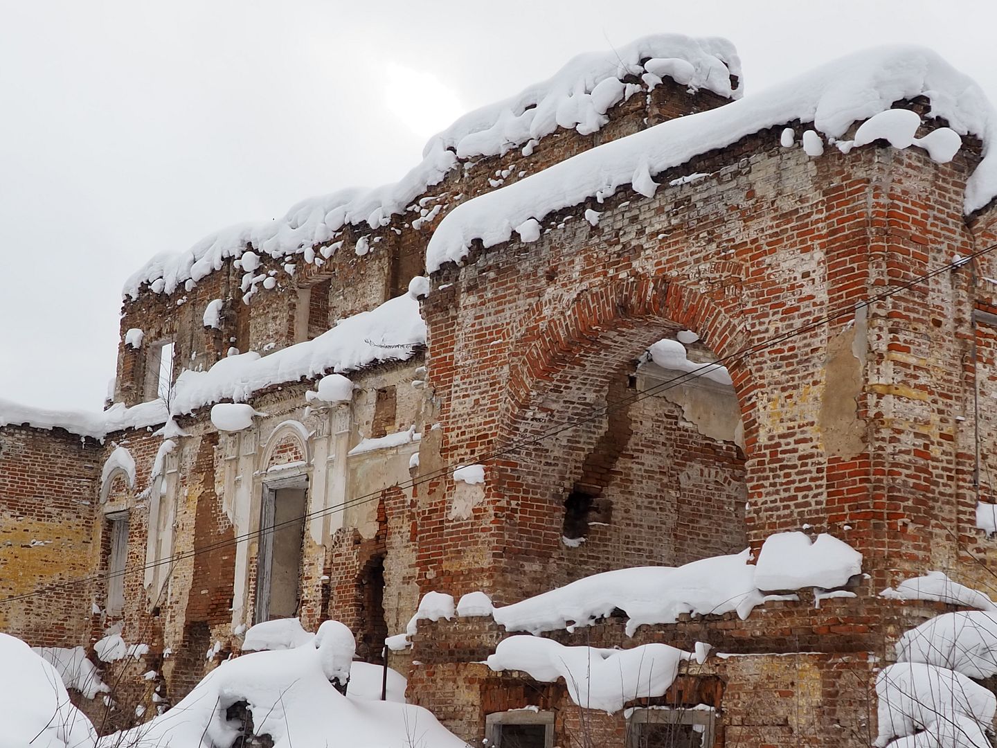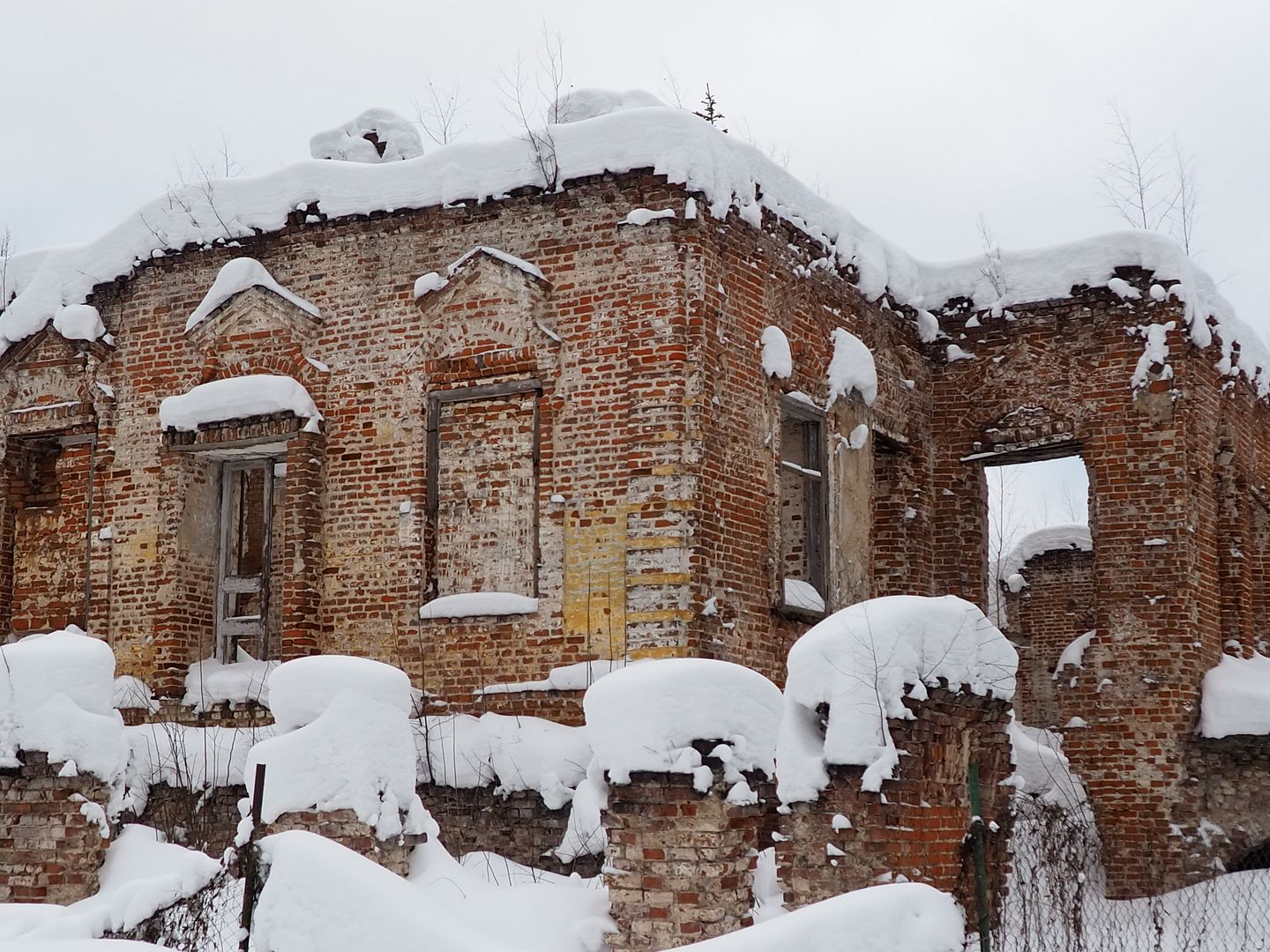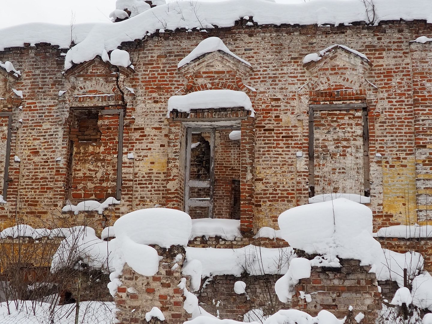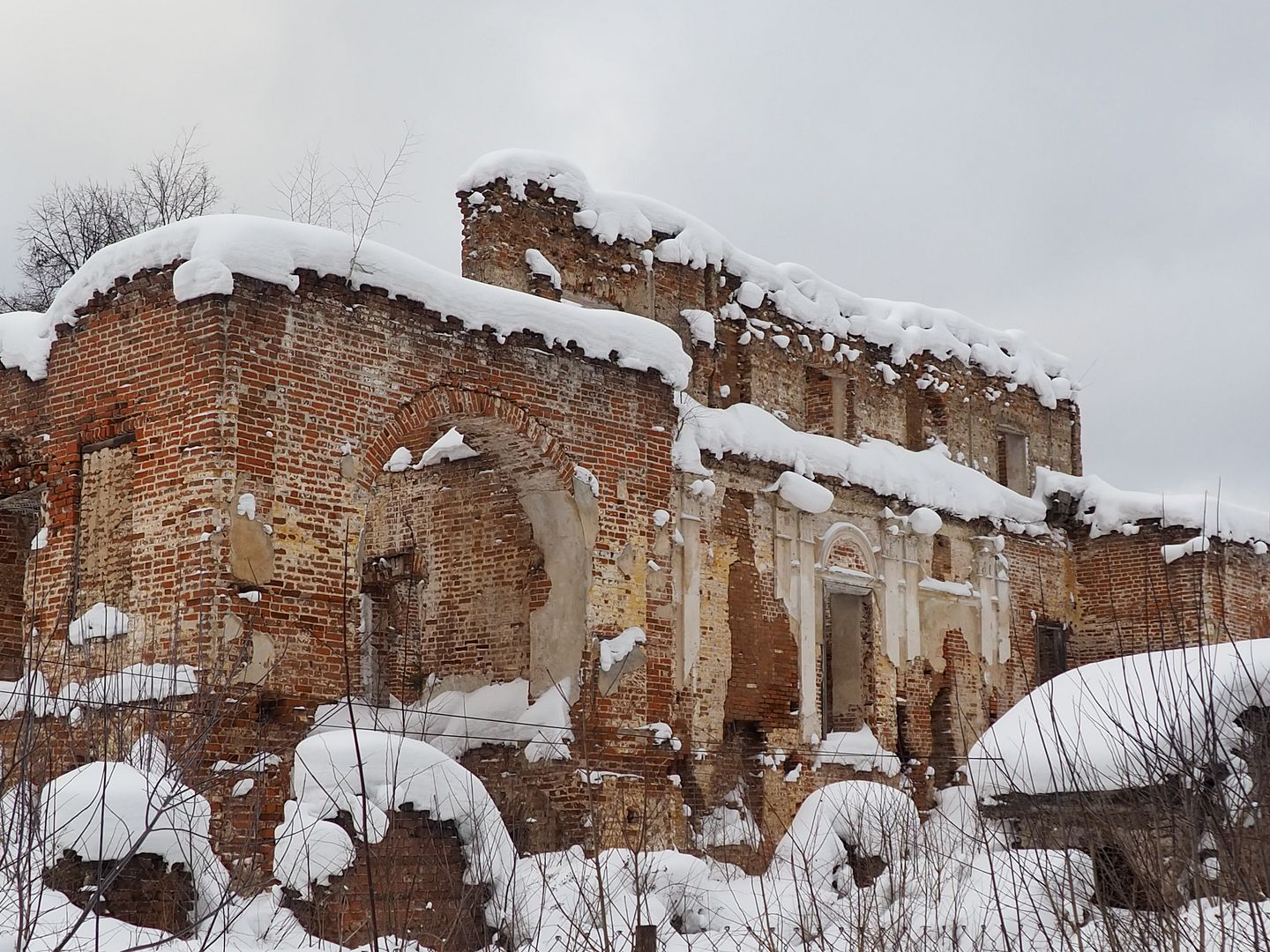 Совсем недалеко от Марфино находятся руины гораздо менее известной, но не менее яркой подмосковной усадьбы - Никольское-Прозоровское. Она стала самым ярким впечатлением нашего дня. Усадебный дом стоит в лесу, через нынешние сугробы к нему таки протоптана тропа (но, сойдя с тропы, ты реально проваливаешься в снег как минмум по колено). Внутрь дома можно попасть, забора нет. Мы очень любим лазить по руинам и заброшкам, поэтому там мы, конечно, насладились сполна.