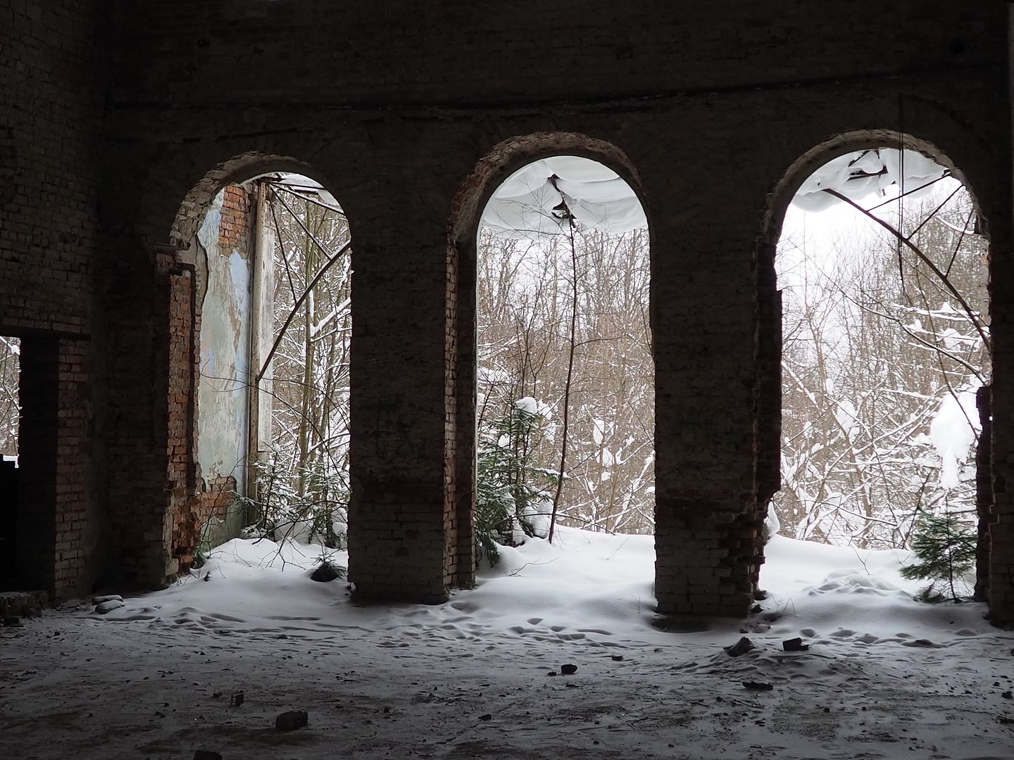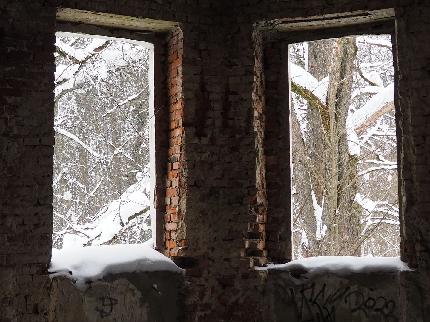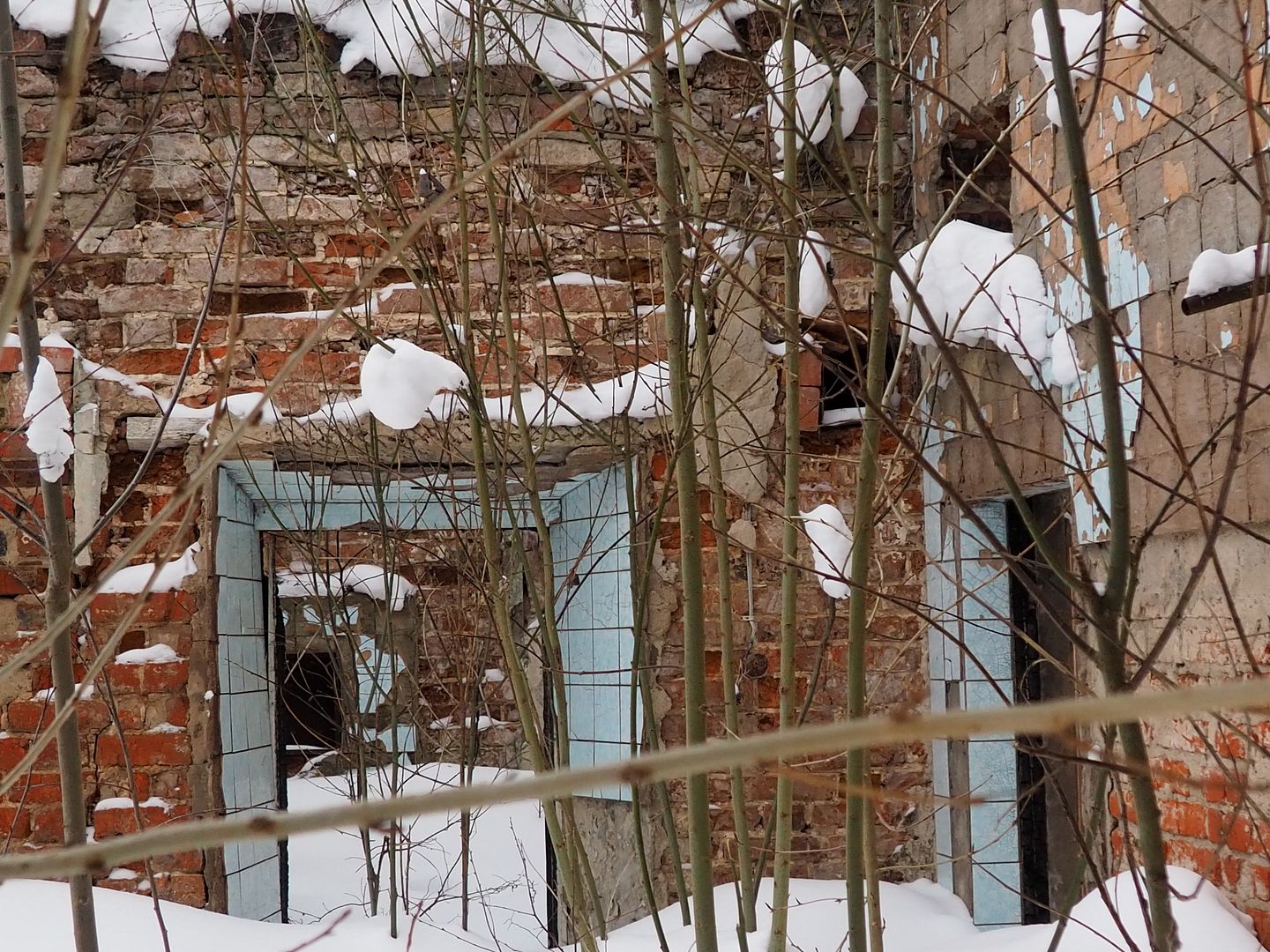 Совсем недалеко от Марфино находятся руины гораздо менее известной, но не менее яркой подмосковной усадьбы - Никольское-Прозоровское. Она стала самым ярким впечатлением нашего дня. Усадебный дом стоит в лесу, через нынешние сугробы к нему таки протоптана тропа (но, сойдя с тропы, ты реально проваливаешься в снег как минмум по колено). Внутрь дома можно попасть, забора нет. Мы очень любим лазить по руинам и заброшкам, поэтому там мы, конечно, насладились сполна.