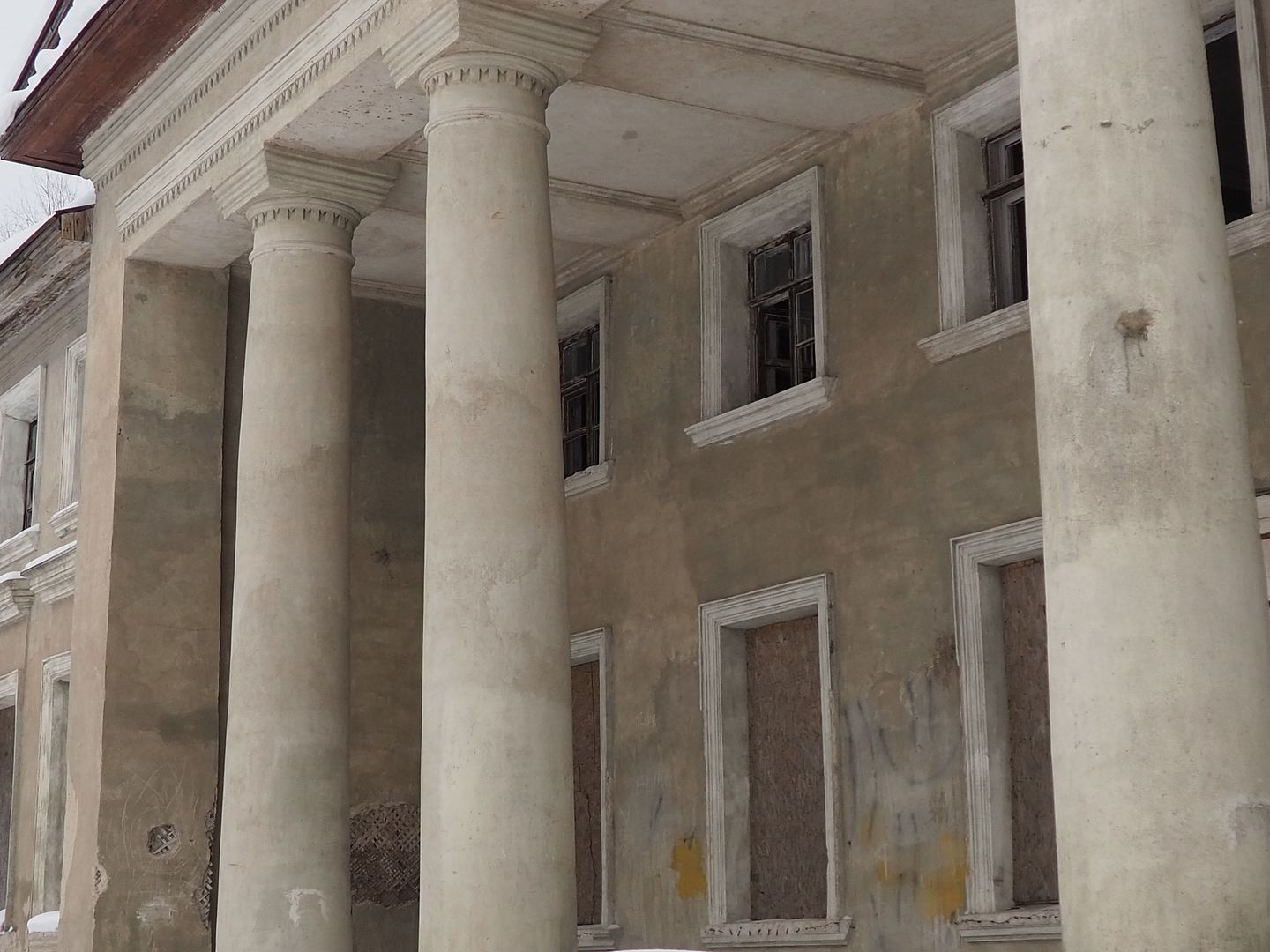 А завершили поездку мы находящейся совсем рядом с Ольгово усадьбой Никольское-Обольяниново. Она, как свидетельствуют плакаты экспозиции во дворе, находится в ведомстве министерства культуры. На дверях дома висит замок, тропинка сквозь сугробы протоптана ровно к входу и всё, т.е. обойти вокруг по нынешним временам было уже нереально. К тому же день уже потихоньку стал клониться к вечеру, так что пора было и честь знать.