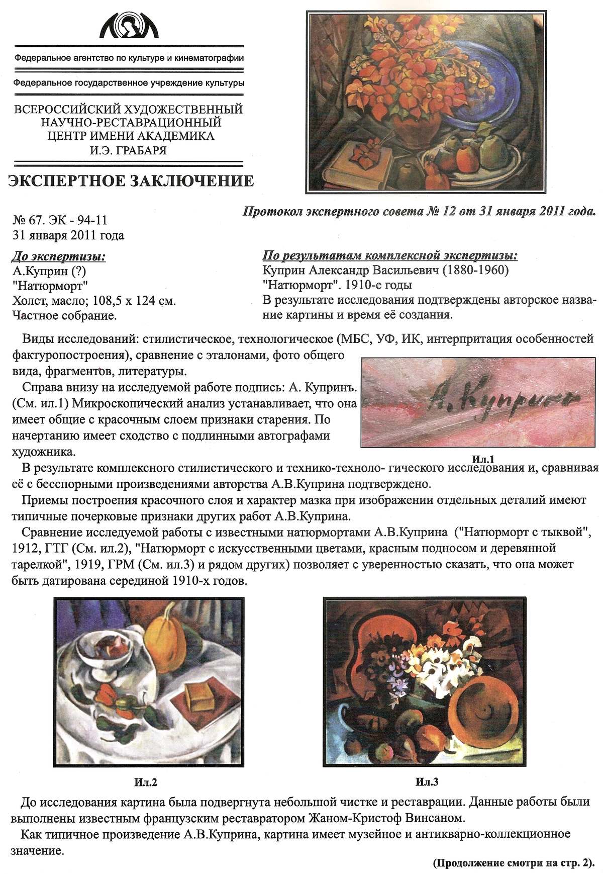 На сайт ARTinvestment.RU поступило письмо из ВХНРЦ им. акад. И. Э. Грабаря. Публикуем этот документ и сопровождающие его фальшивые экспертные заключения.