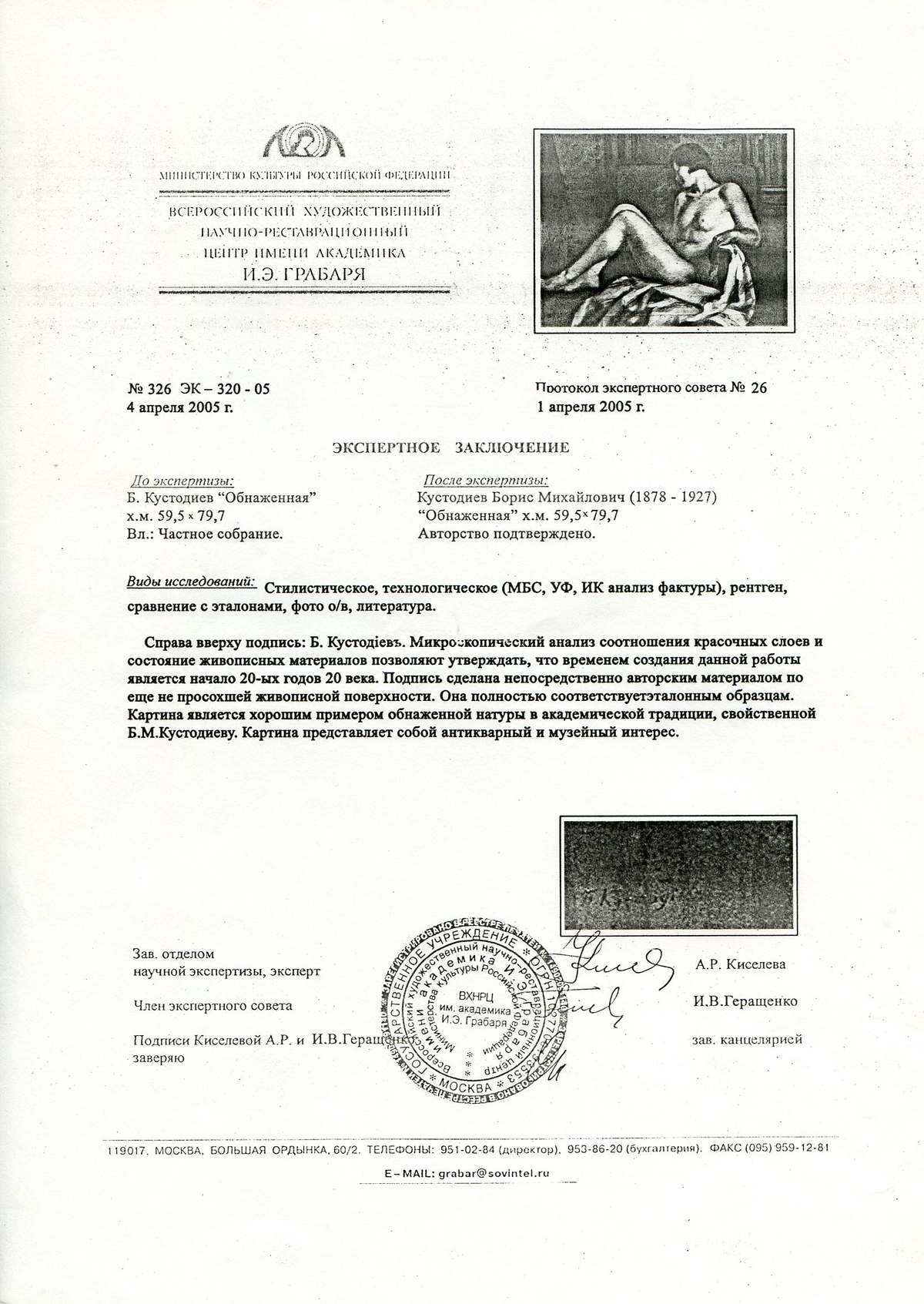 Коллекционеры, антиквары, владельцы и покупатели произведений живописи и графики, будьте внимательны! При возникновении сомнений в достоверности экспертного заключения, просим вас обращаться к нам для проверки его подлинности.