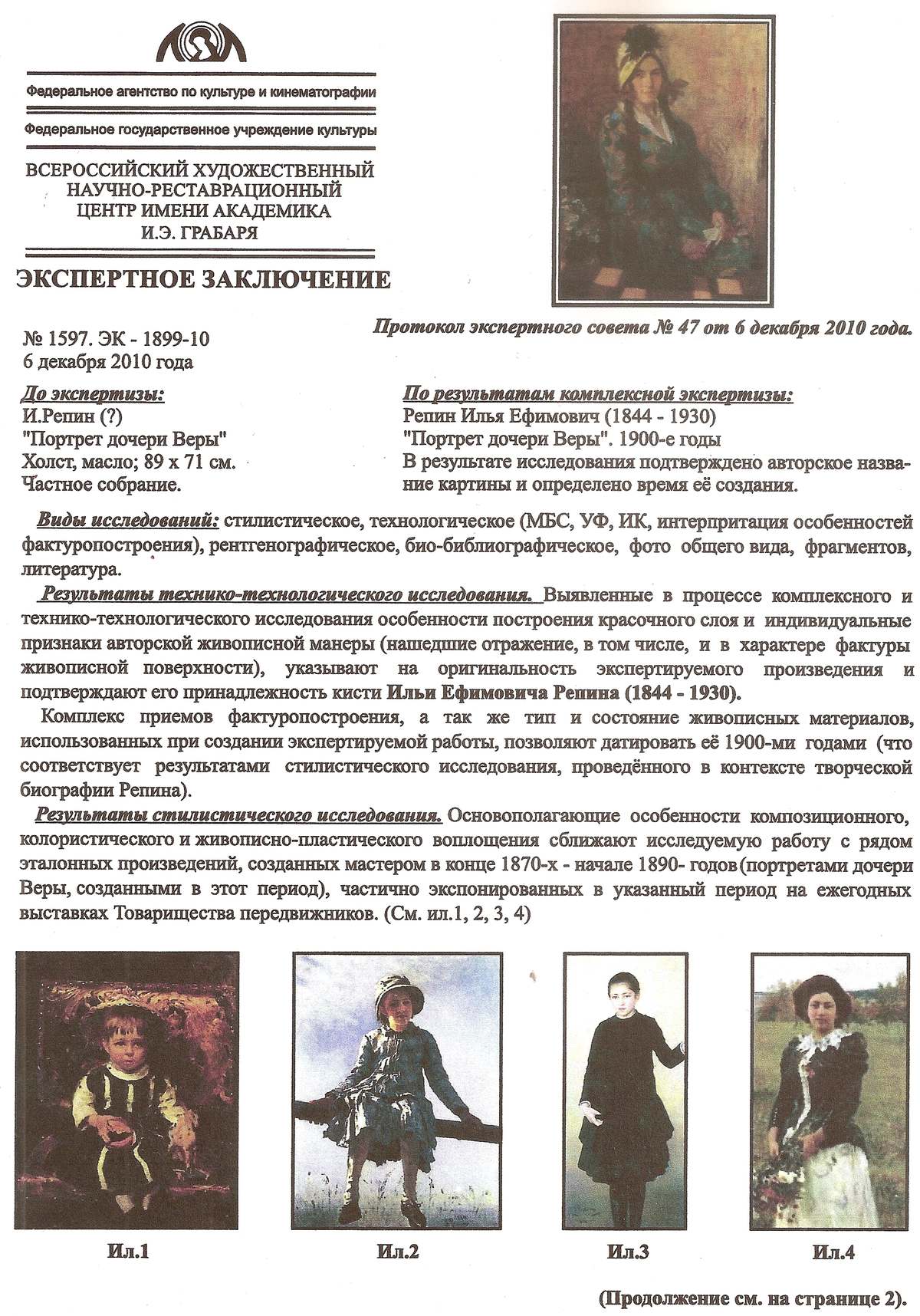 Фальшивые экспертные заключения ВХНРЦ им. акад. И. Э. Грабаря