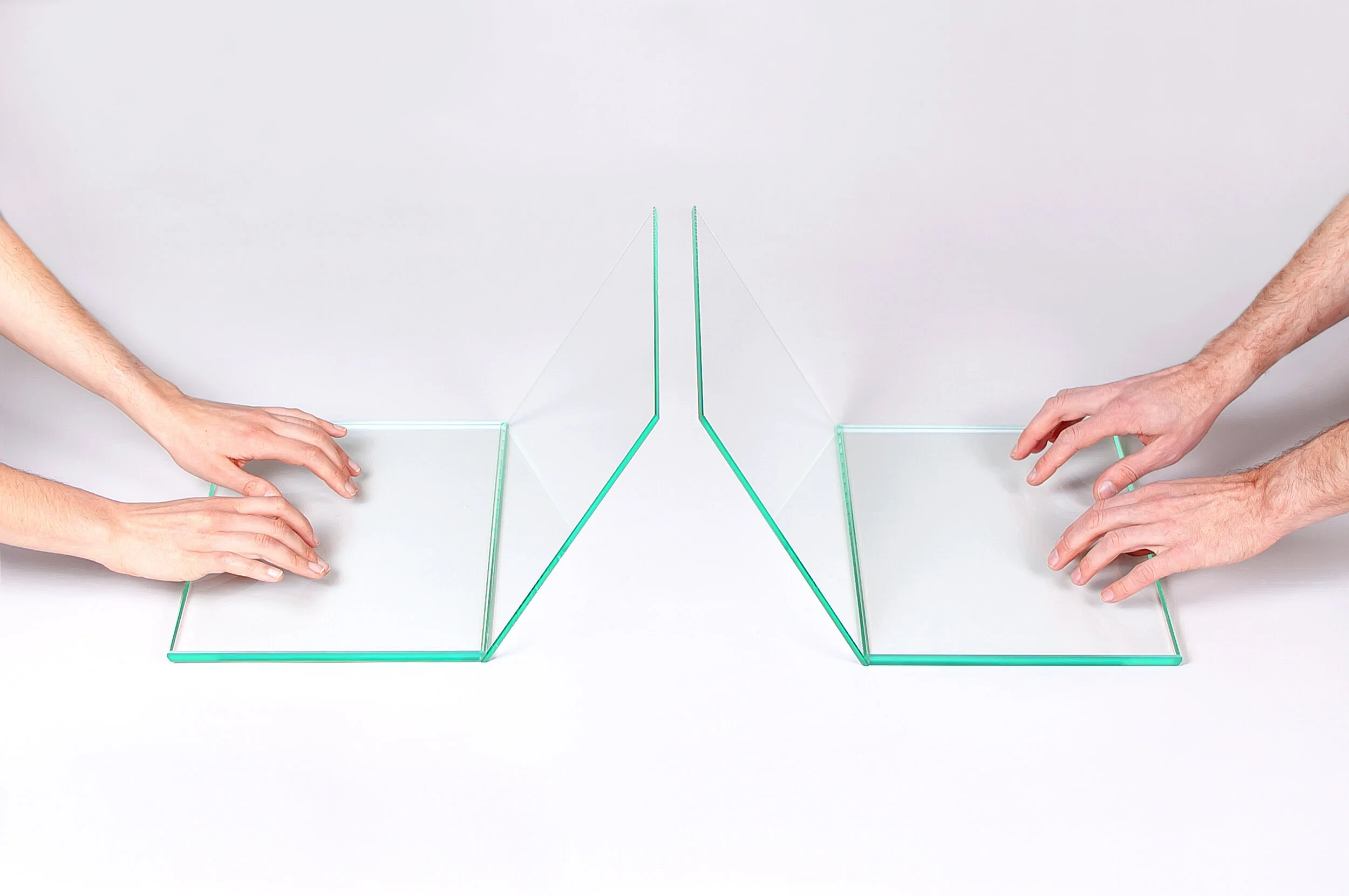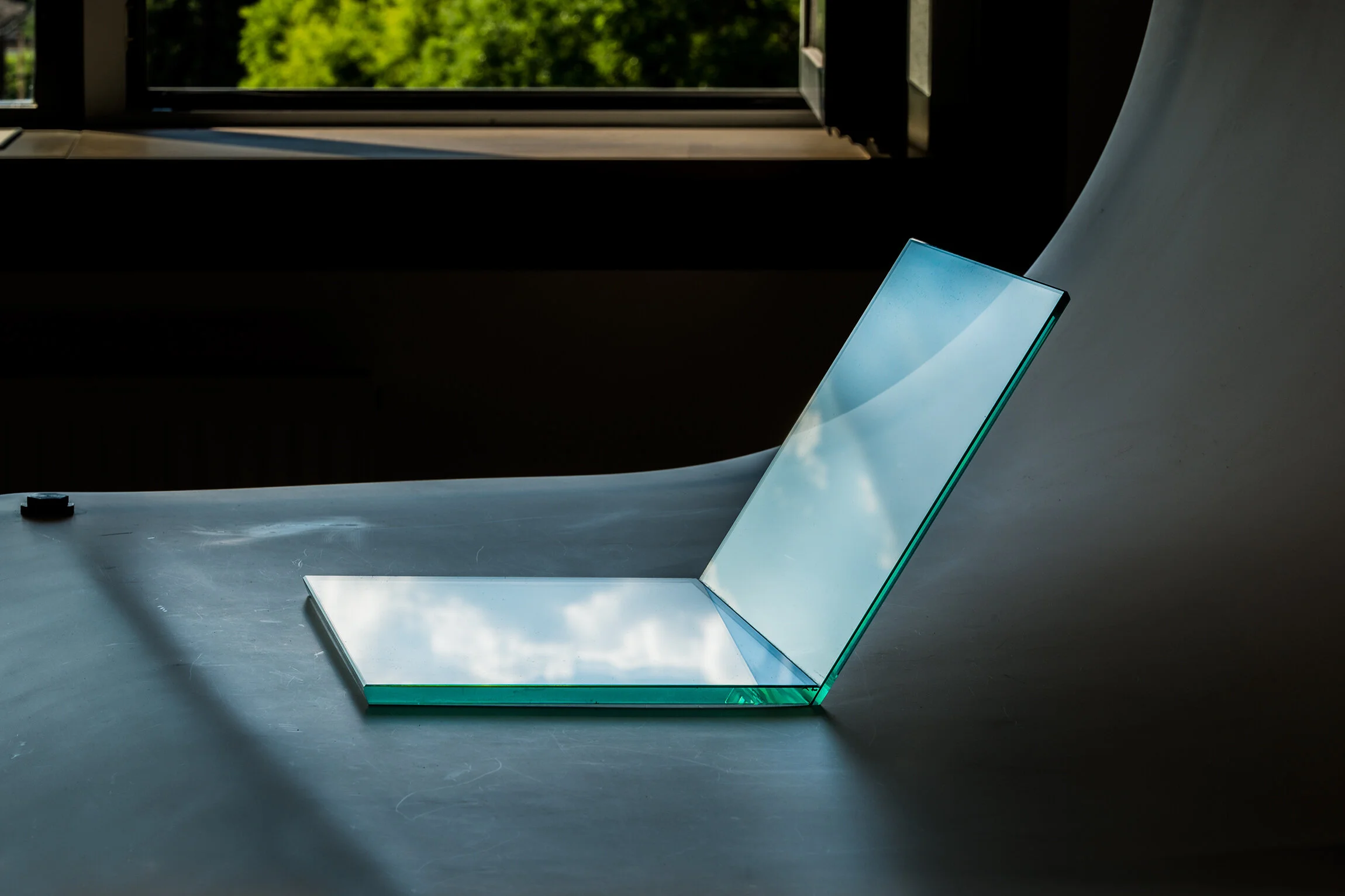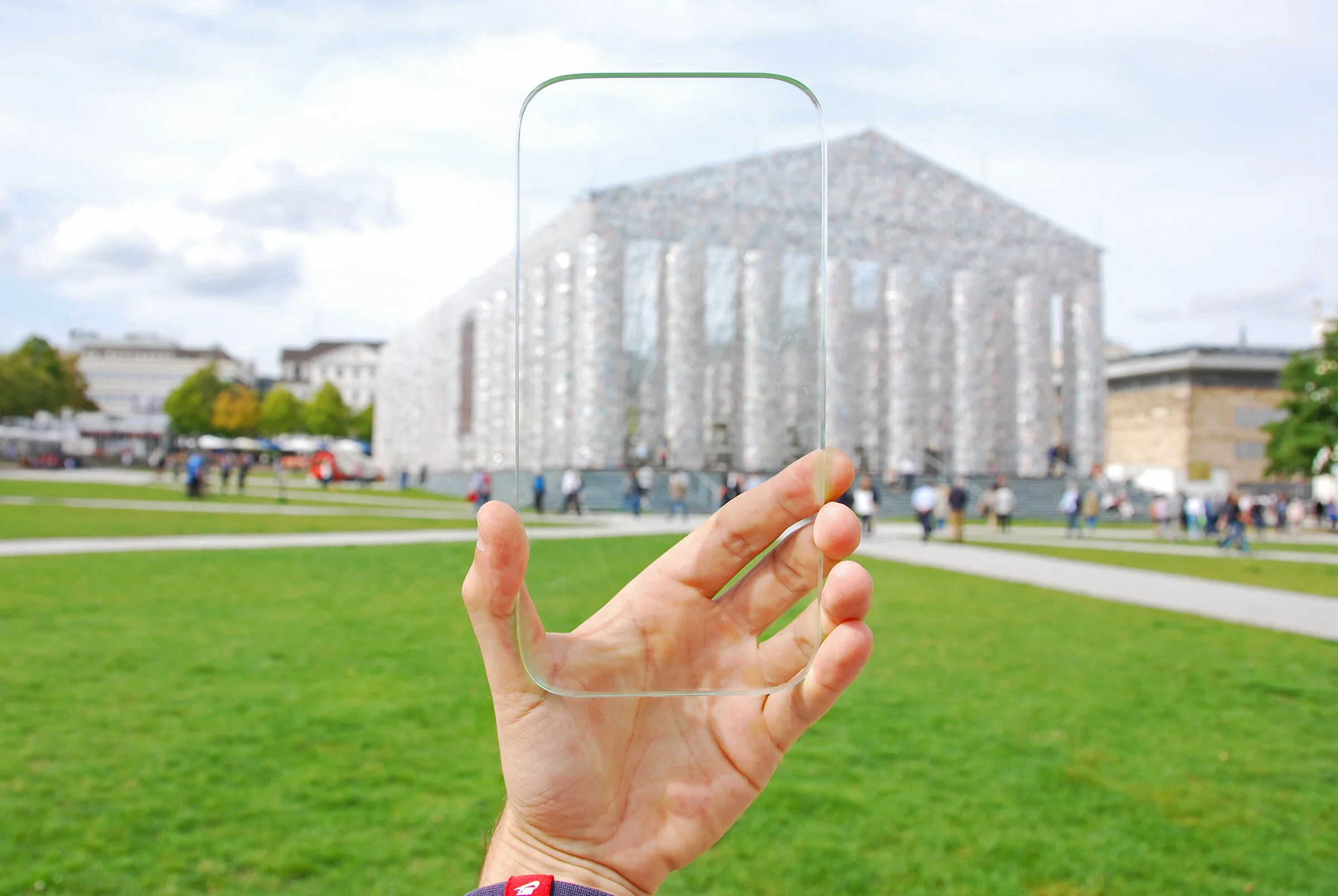 By throwing back the symbol of digital space, limitless communication, infinite information to its purely material form, Hornig makes the paradoxical cultural elevation visible. For the device as such is free of any content, it is a neutral surface and at no time permanent. Only at the moment of use does it transfer the surrounding reality into a virtual illusion of the same, thus becoming a mirror of countless, varying realities. The transparency of the "GlassPhone" refers to the actual function of the smartphone as a transmitter of information and translator between the worlds.