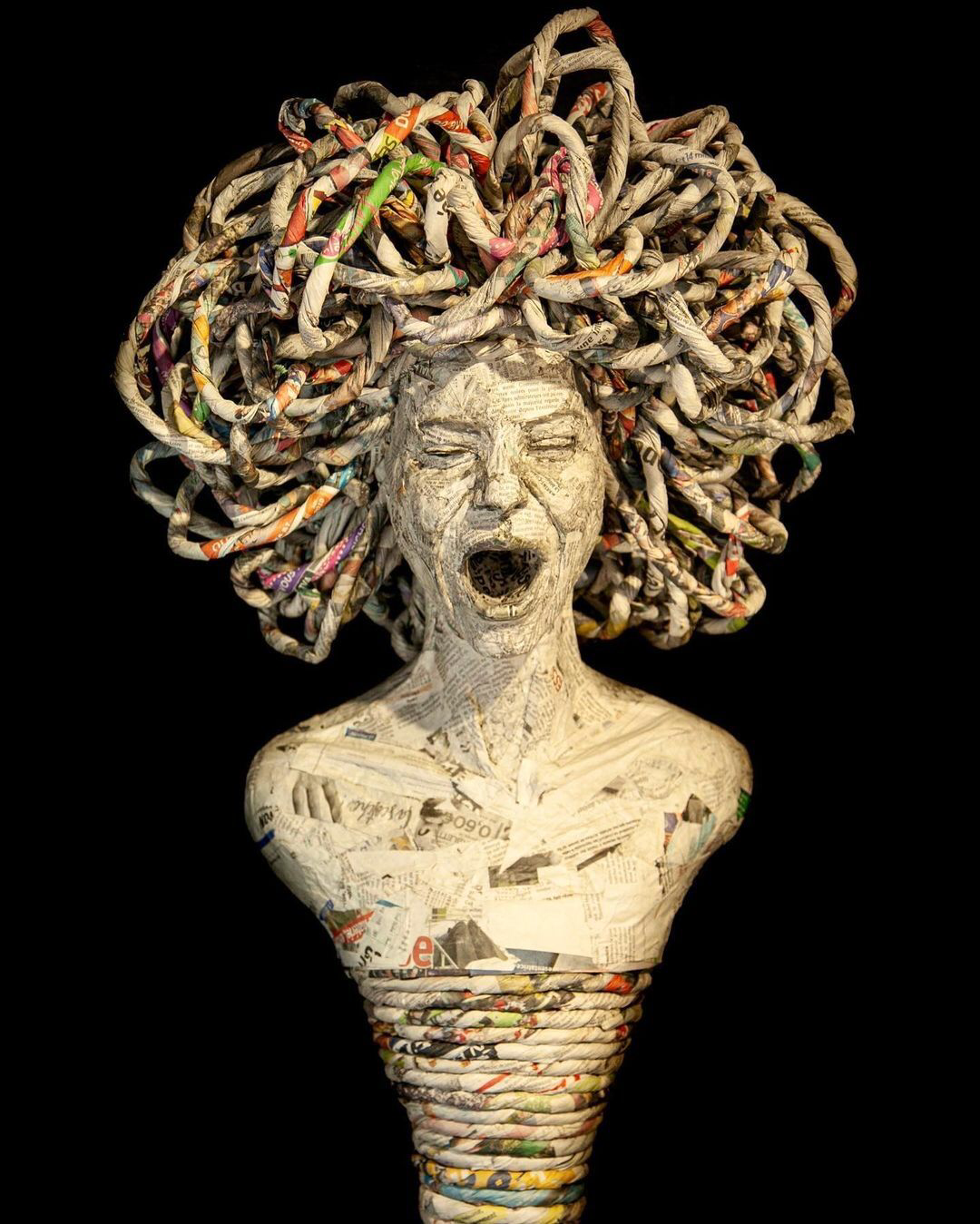 Celine Chouvenc is a French contemporary artists working in papier-m^ach'e techniques. She is focusing on sculpting enigmatic portraits of woman and revealing a supernatural power in each of them.