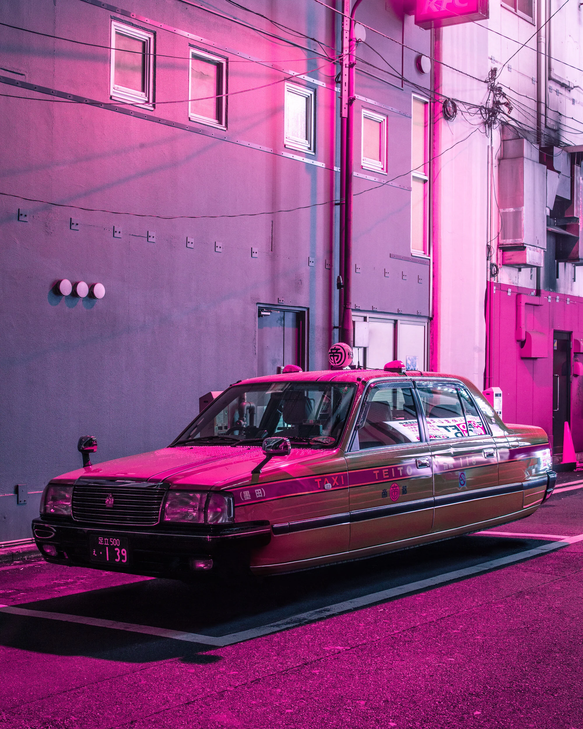 Using only existing light sources – the moon (Midnight Modern), The neon Lights of Tokyo (Nihon Noir) or the harsh street lights of LA (Noct Angeles) Blachford hunts for the overlooked cinematic moments in the everyday and works to distil them with a sense of mystery, unease and wonder.