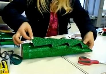 3. Бумагу согнем по надрезам и слепим концы липкой лентой. Получилась елочка.