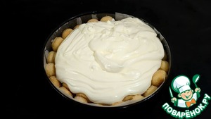 Нанесите крем на Савоярди и равномерно распределите по всей поверхности.