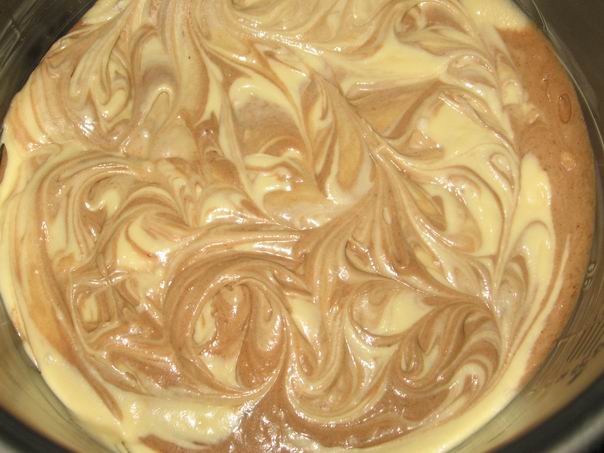 Тесто делим на две части, в одну добавляем какао, тщательно перемешиваем.