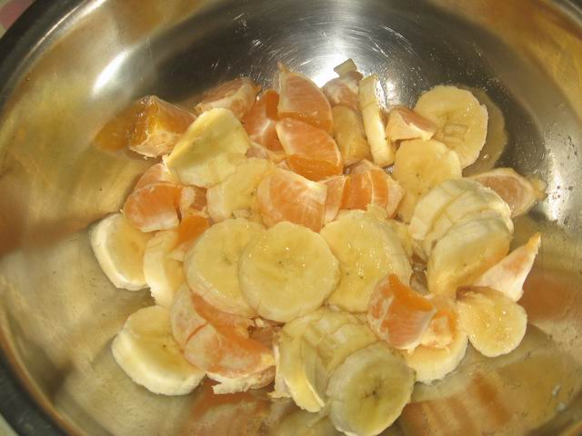 Потом добавляем фрукты. Перемешиваем.