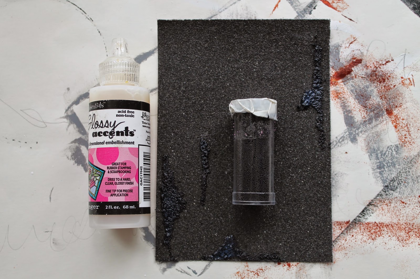 Для начала берем черный микробисер и приклеиваем на наждачку (я делаю это с помощью глосси акцентс)