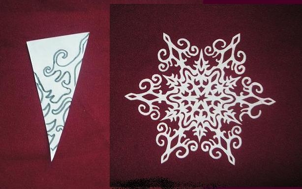 Шаблон наложить на фотокартон, перевести контур шариковой ручкой (с нажимом), в результате на фотокартоне появится тисненый контур, по которому надо вырезать мотив.
