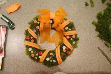 Яркую и необычную ёлку можно сделать даже из такого обыденного предмета, как обычные пуговицы. Для этого нужно всего-навсего обклеить основу-конус плотной зелёной тканью (лучше фетром) и украсить её пуговицами разных цветов и размеров. Крепим их декоративными булавками плотно друг к другу, украшаем верхушку бусиной, и пуговичная ёлка готова.