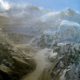 Палка, нижний конец которой можно сделать заостренным, очень помогает опираться на твердое - но твердого этого довольно мало, а камешки предательски катятся к самому краю ущелья...Тут я познаю еще 2 "больше не могу" (но, посокльку критическое число по-прежнему 3, мы продолжаем путь). Страшно, когда не за что ухватиться, когда обе ноги вдруг начинают ползти к ущелью, леднику, реке...Страшно, когда нужно прилепиться вертикально в скале всем телом, а камешек или ращелина, за которую можно держаться - всего пара сантиметров. Хорошо, когда есть тот, кто может сделать ступеньку - твердое - из своей палки, кто заорет в самое ухо не своим голосом "Хватит реветь!". Я не могу найти слов, чтобы описать эту насыпь, но те, кто знают меня лично, понимают, что по-настоящему страшно мне бывает редко...А тут - вдруг - "какая ценность жизнь - и как я ее люблю".