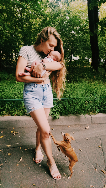 Фотографий много накопилось за это время) В один из дней, мы уснули с Лу в мешках, а проснулись уже втроем с Пуфкой. Чудесное было утро :) вообще, не могу нарадоваться тому что она родилась летом. Ночи такие короткие, пока темно - я просто как разряженная батарейка, но с первыми лучами солнца - я огурчик. И Лу тоже жаворонок.