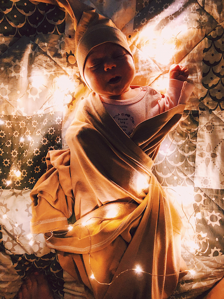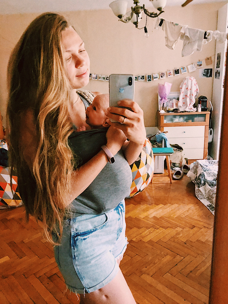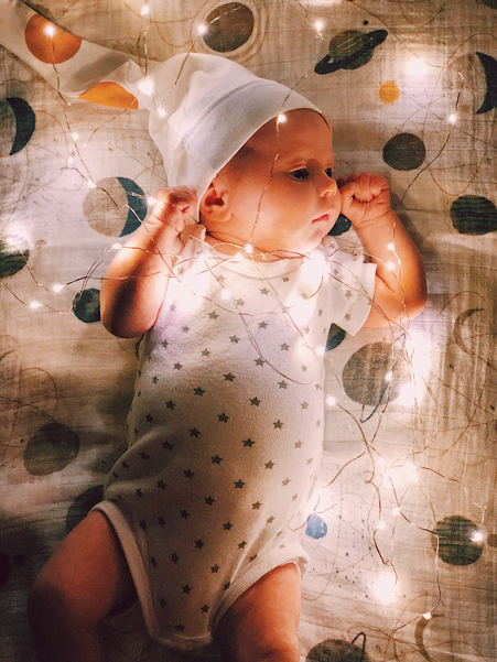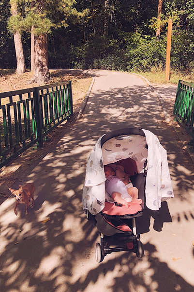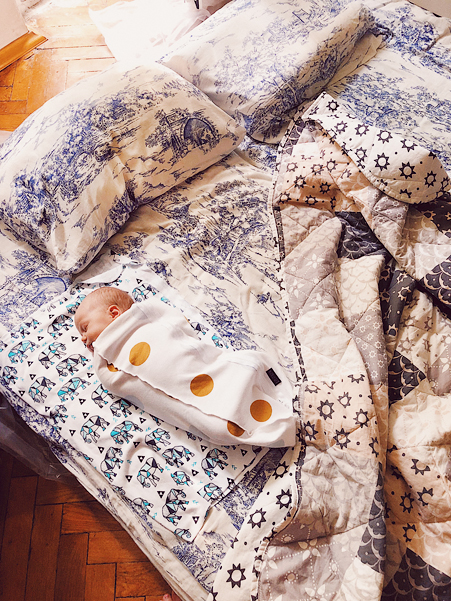 С прошлой недели, мы укладываем спать тебя в коконах - уж больно драчливой ты стала во сне :) Порой и мне прилетало твоим крошечным, но бойким кулачком. Так и спим по походному, наслаждаемся летом.