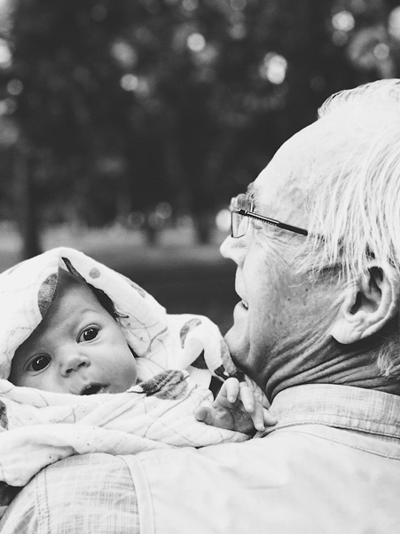 Бабушка и Дедушка очень выручают нас с папой, все вместе мы ездили уже на полдюжины съемок, даже свадебки возобновили снимать. На руках у Дедушки ты всегда спокойна и улыбчива, у вас с ним просто невероятный контакт :)