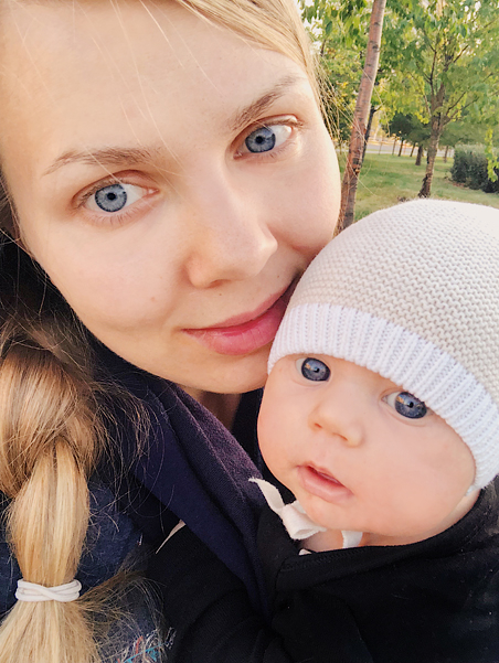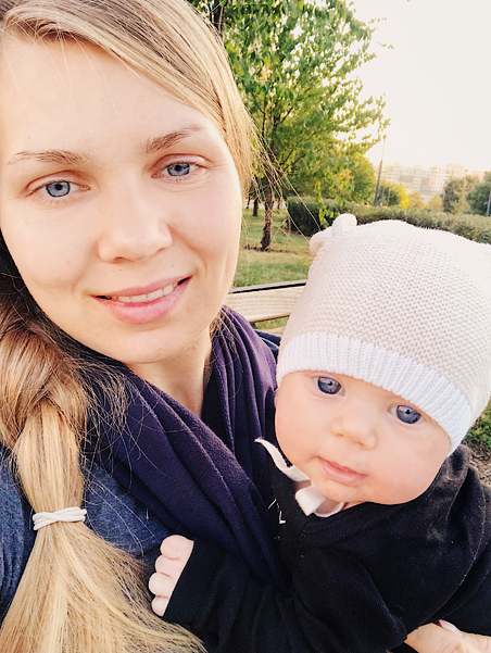 В семь недель ровно у меня наконец-то сложилось со слингом: гуляем, вокруг тёплые осенние лучики, мы в обнимку, как будто ненадолго я вновь с животиком *____*