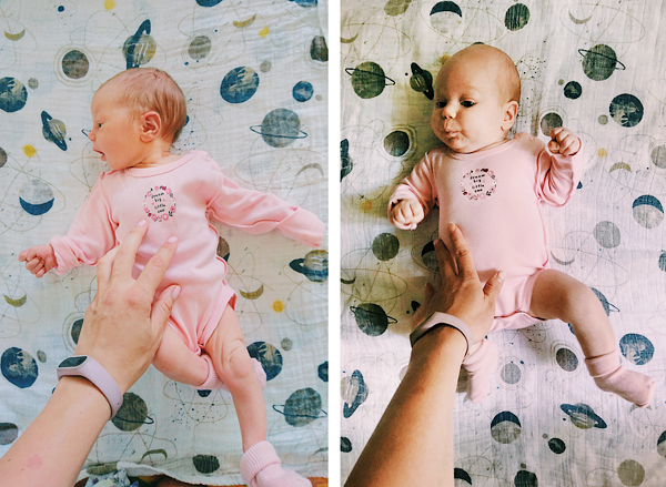 Как разный свет и разные телефоны все-таки меняют снимки. Решила сравнить Пирожочка: похоже ее самое первое боди теперь уже навсегда останется на полке. Слева ей 2 дня, а справа 7 недель