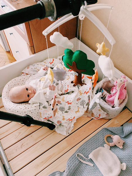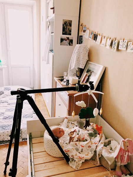 штатив наконец сгодился - клиенты сделали для нее мобиль, а я всю голову сломала как и куда же нам его подвесить - кроватки-то нет. Кирилл нашел изящное решение))