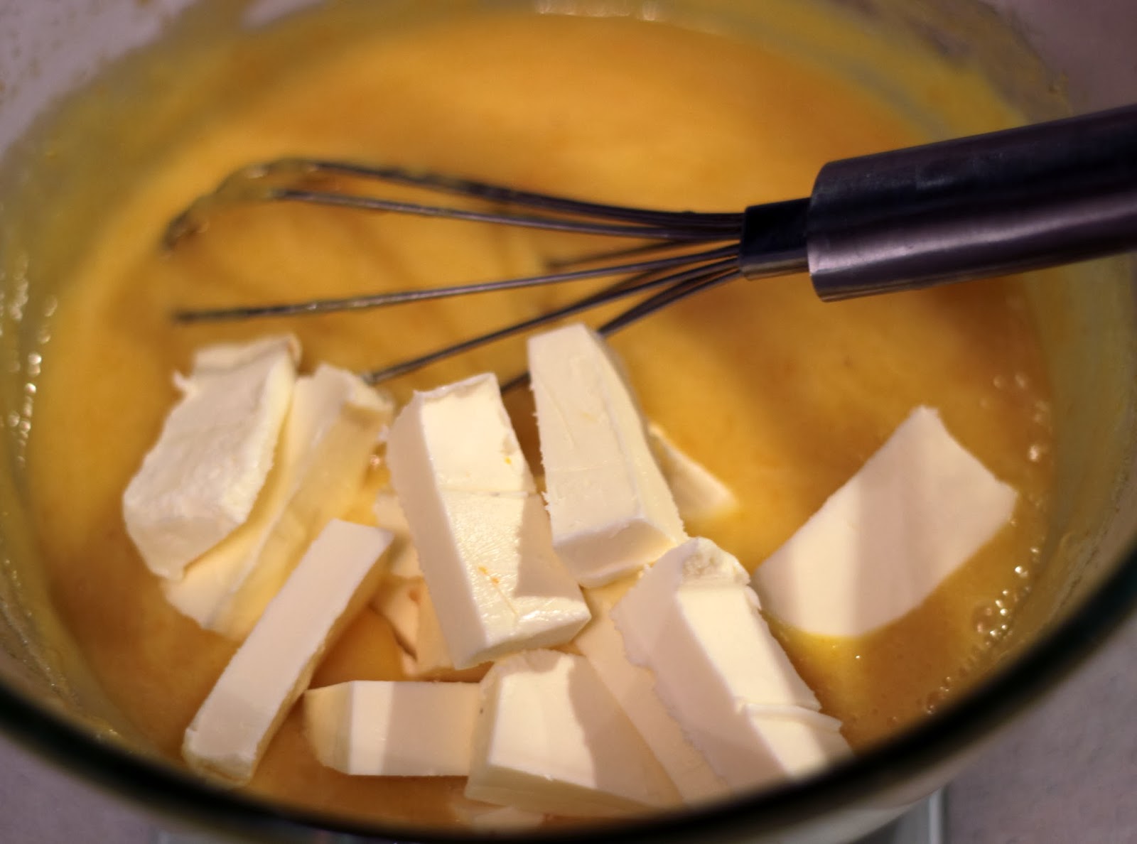 * Этот крем делается аналогичным образом, как и лимонный. Но мне он показался более жидким, я решила добавить немного желатина, в принципе, это делать необязательно. На мой вкус этот крем сам по себе очень сладкий, но я его планирую смешивать с несладкими ингредиентами, поэтому имеет смысл делать его много, если у вас намечен еще один десерт с ним (хотя я допускаю, что для кого-то его и так поесть не сильно сладко).