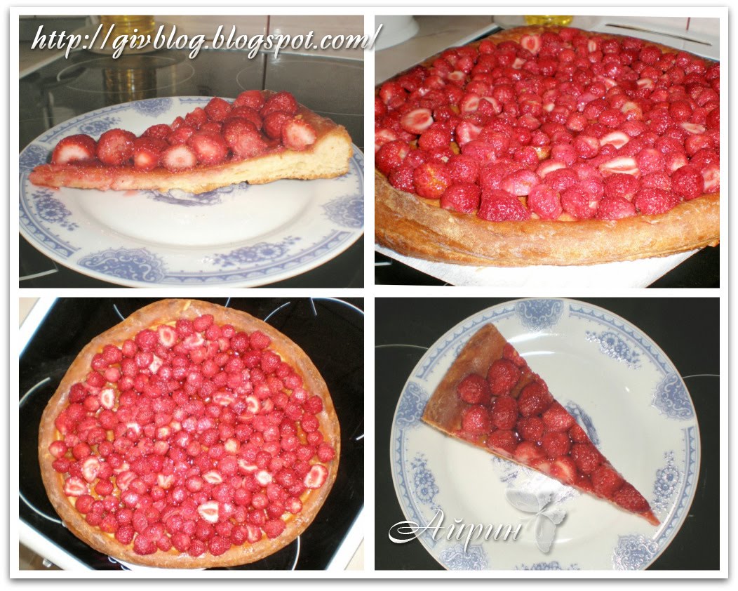 Прелесть этого пирога в том, что клубника в нем именно свежая, она не запекается в духовке, а просто засыпается сахаром и заливается желатином. Он получается такой ароматный и легкий, что можно запросто съесть несколько кусочков :)