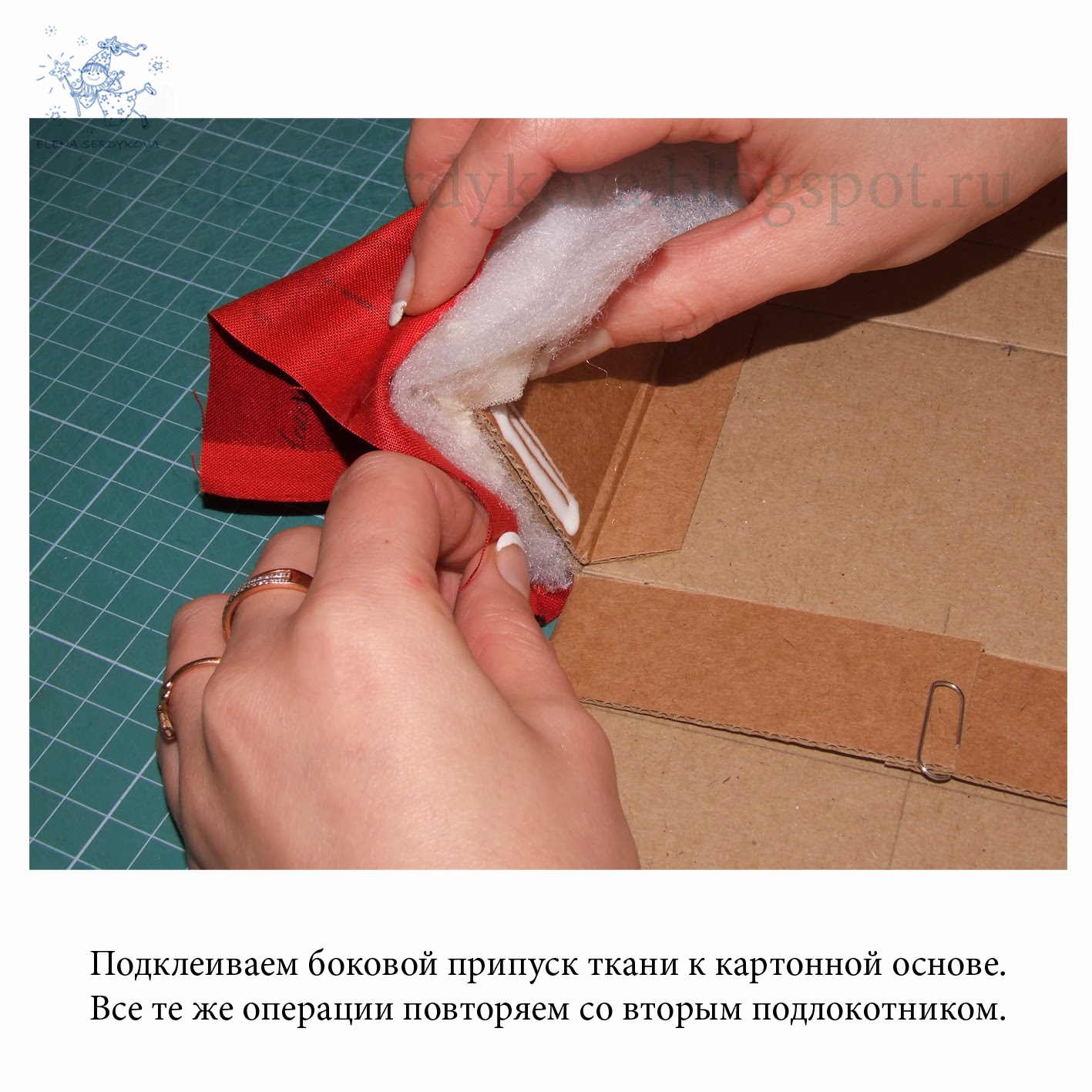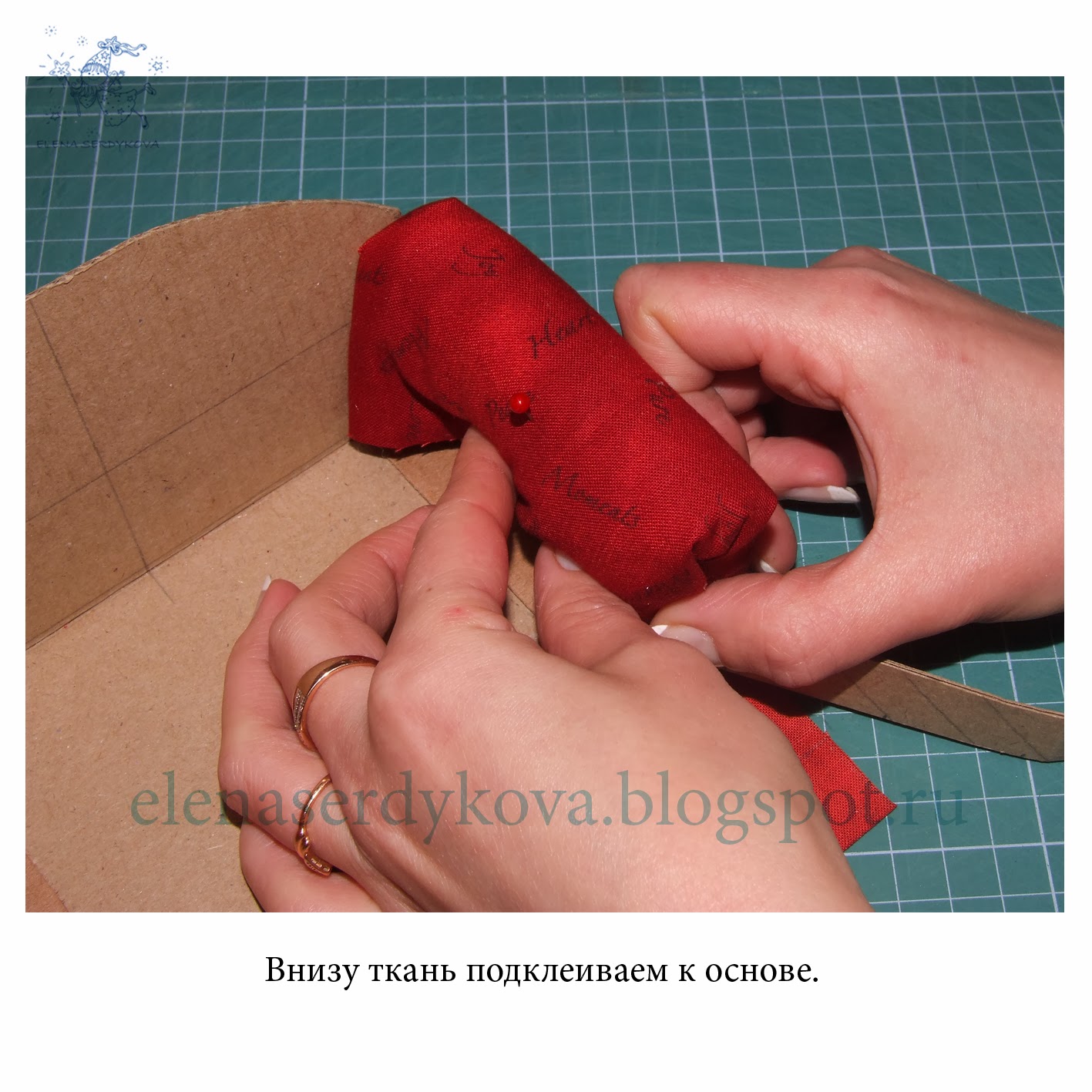 не забудьте подложить между картоном и тканью синтепон - мне пришлось переделывать))
