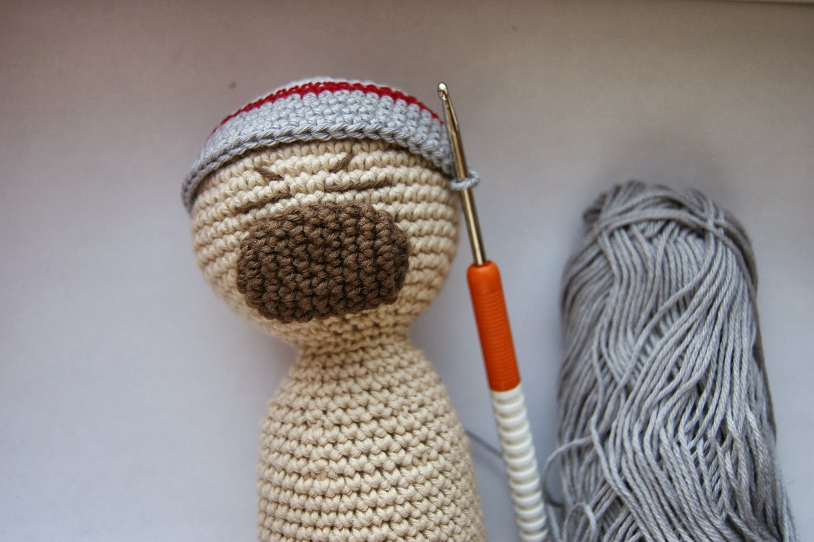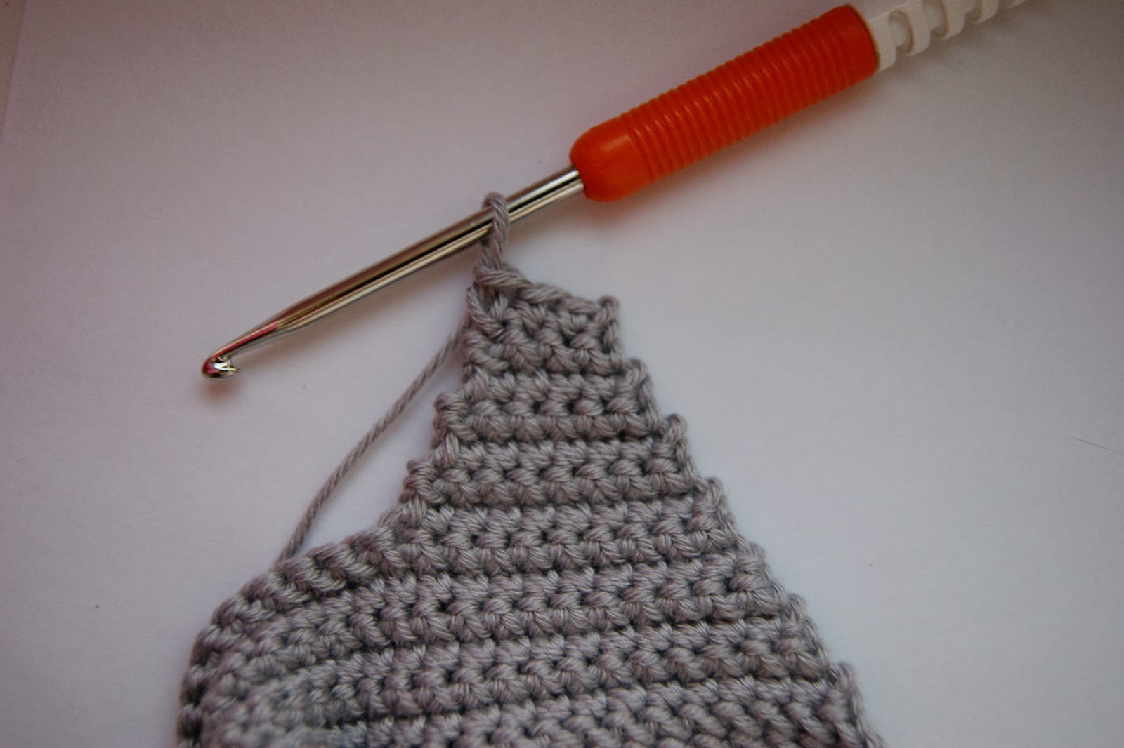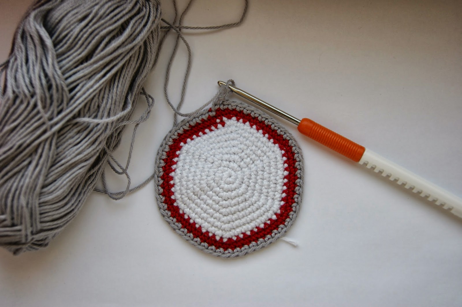Меняем нить на СЕРЫЙ цвет и продолжаем вязать по кругу уже без прибавок...
