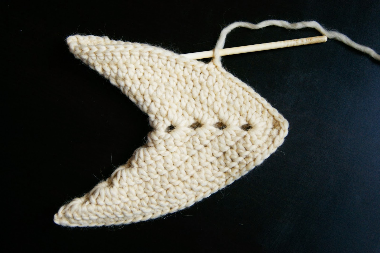 тут я пронумеровала петли... вводим во вторую петлю крючок, видите какой скос получается ровный |